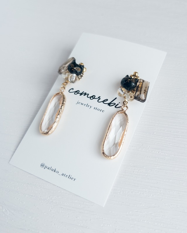 猫とビーズの物語 Robe noire du chat ピアス 黒猫ピアス 猫ピアス 黒猫 ビーズ 秋・冬