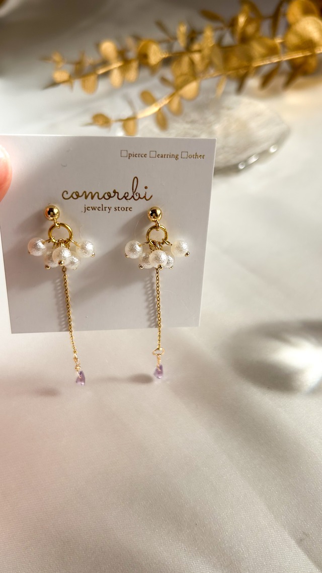 Early spring アメジスト パールチャームピアス アメジストピアス 揺れるピアス 2月誕生石