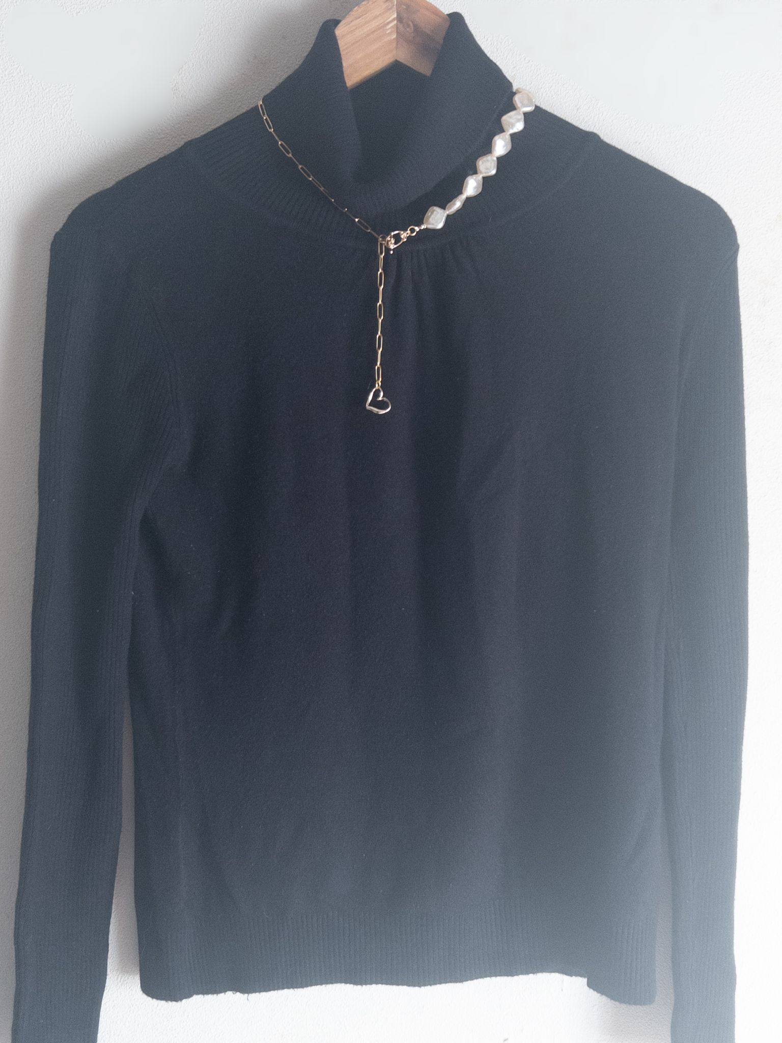 バロックパールビーズのネックレスを取り入れて、普段着もよそ行きのお洋服も上品に。