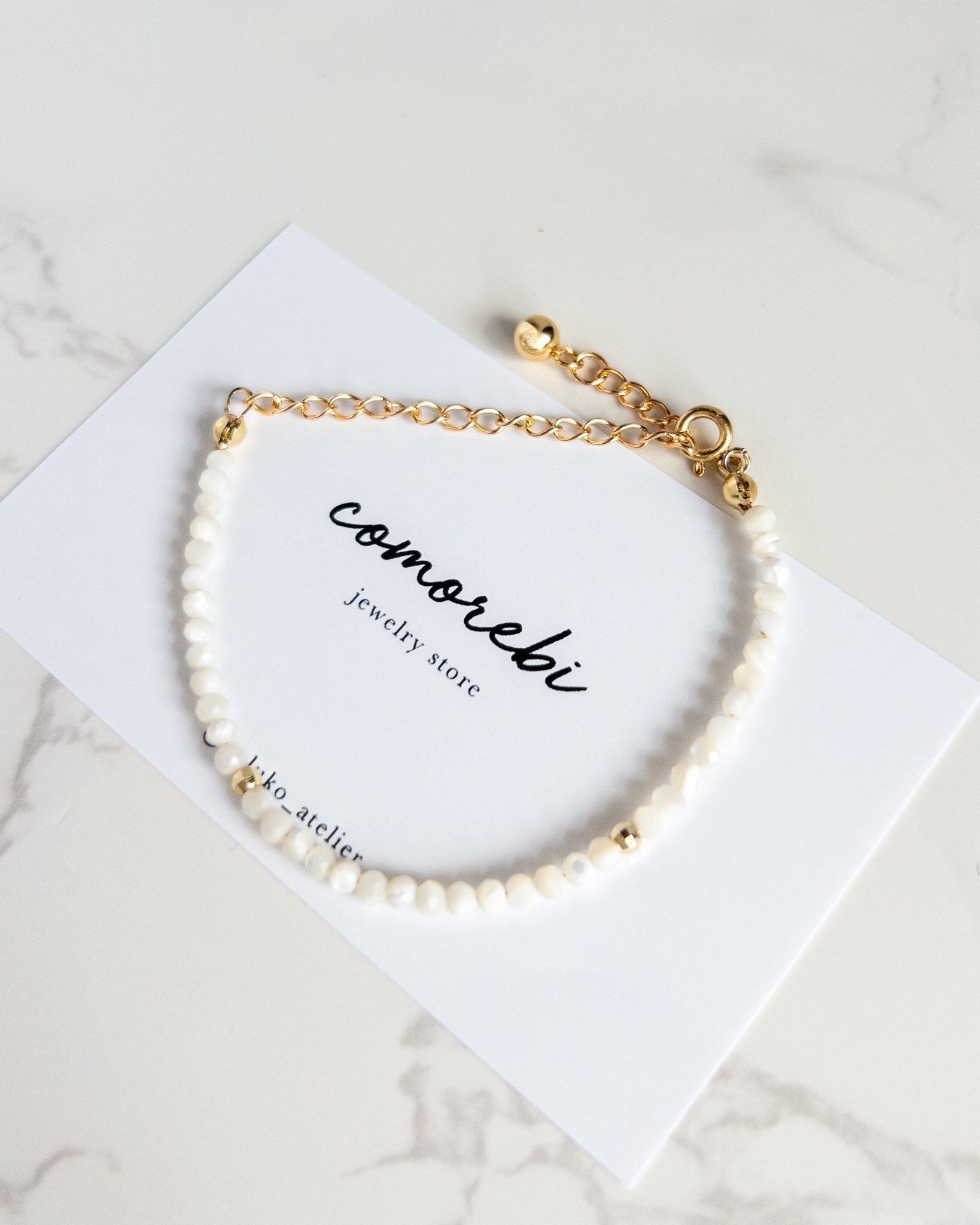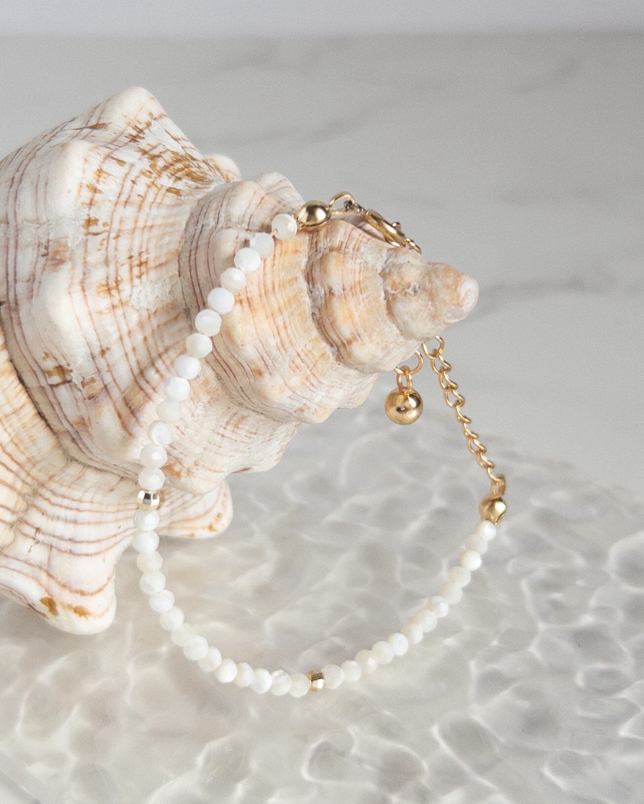 Eternal Shine - シンプル天然石ブレスレット マザーオブパール サイズ調整可 錆びにくい 夏 日常 お出かけ