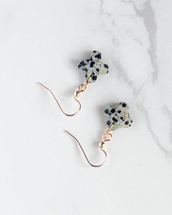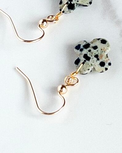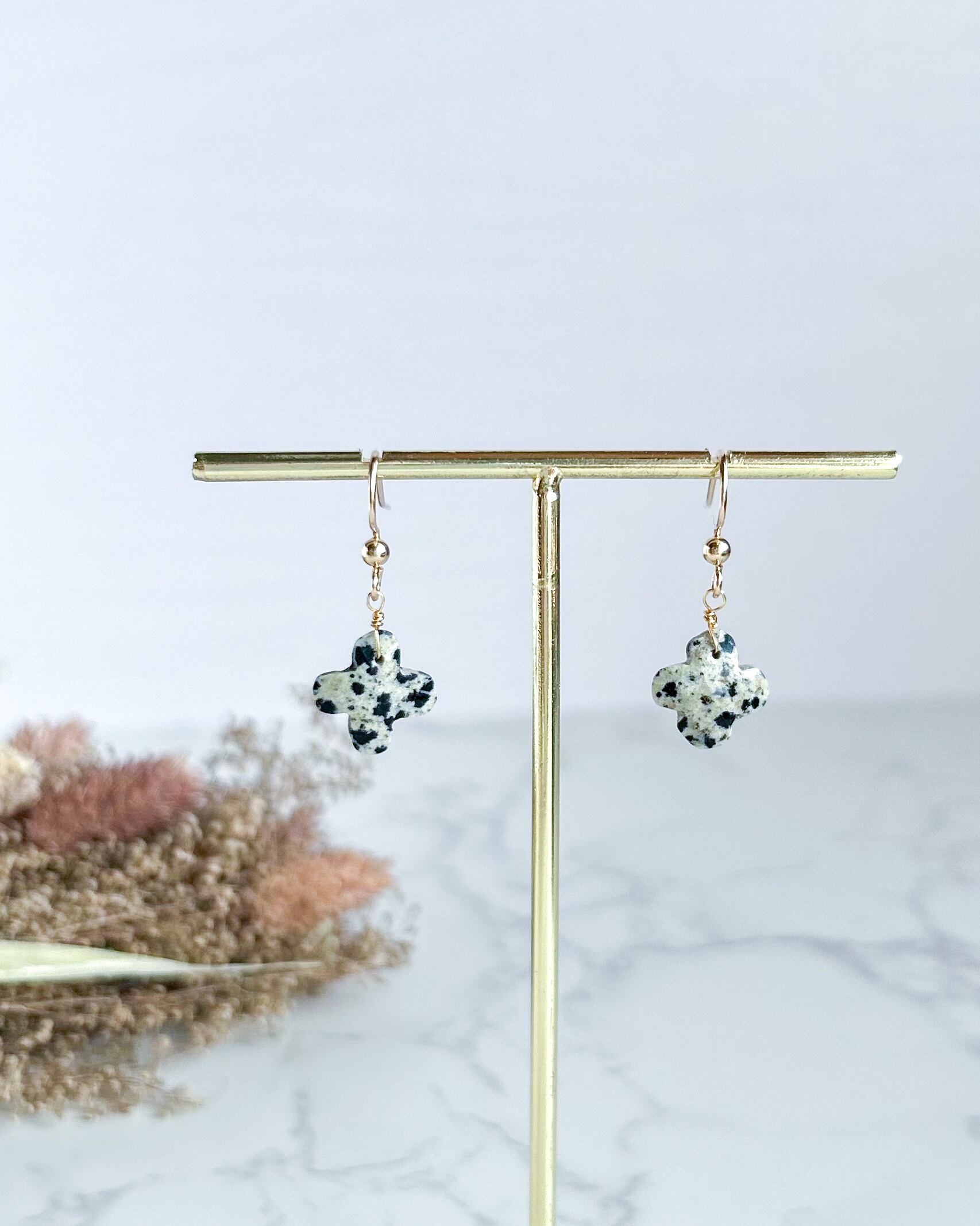 ぽってりクローバーの天然石ピアス – Dalmatian Jasper 天然石ピアス 14kgf ダルメシアンジャスパー カジュアル 可愛い