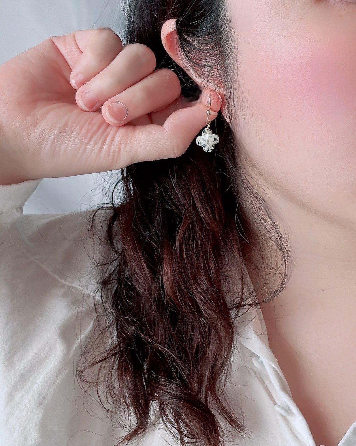 天然石ならではの柔らかな模様と、ちょこんと揺れる姿が耳元に優しいアクセントを添えてくれます。