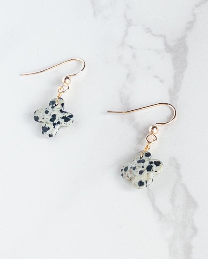 ぽってりクローバーの天然石アクセ – Dalmatian Jasper