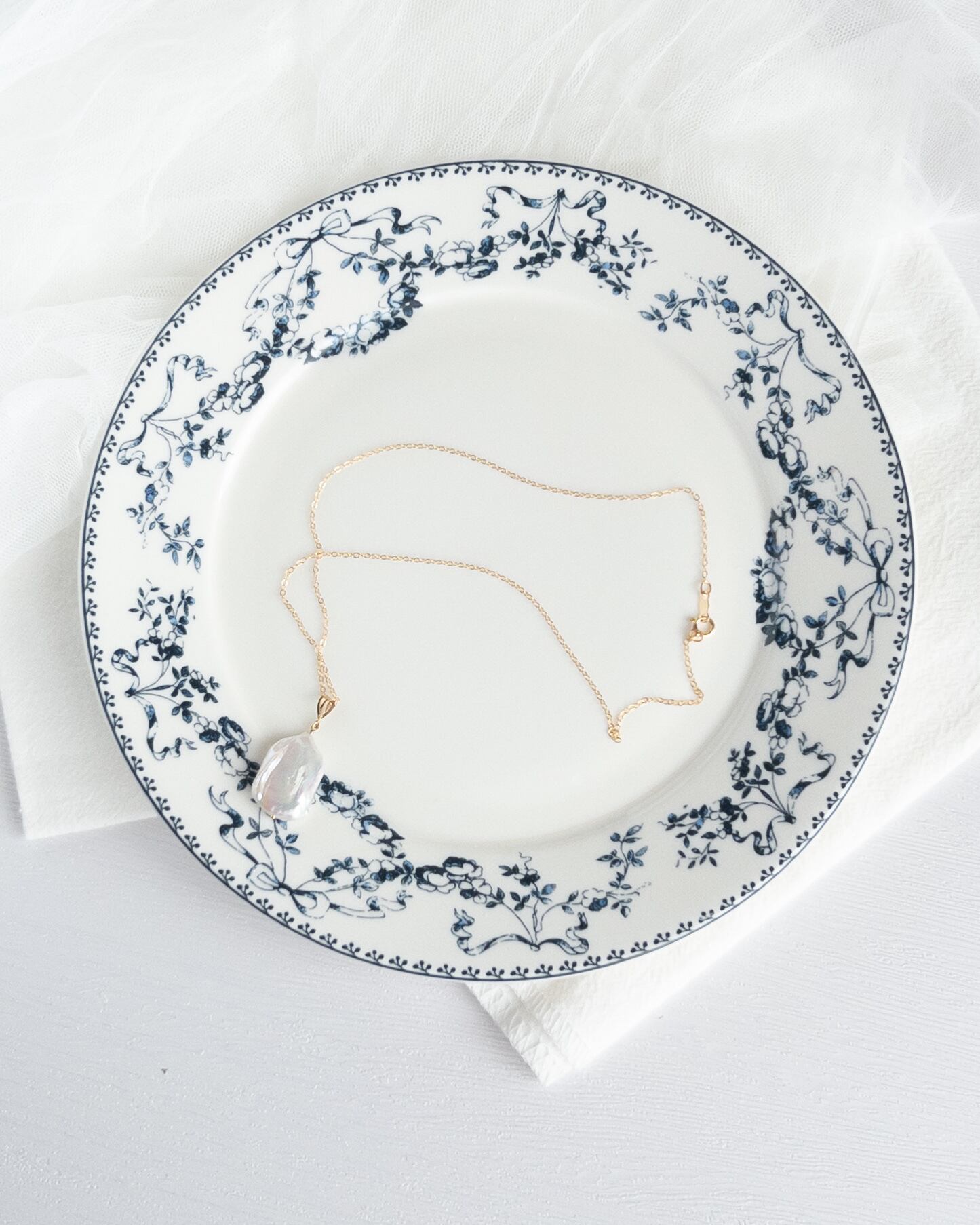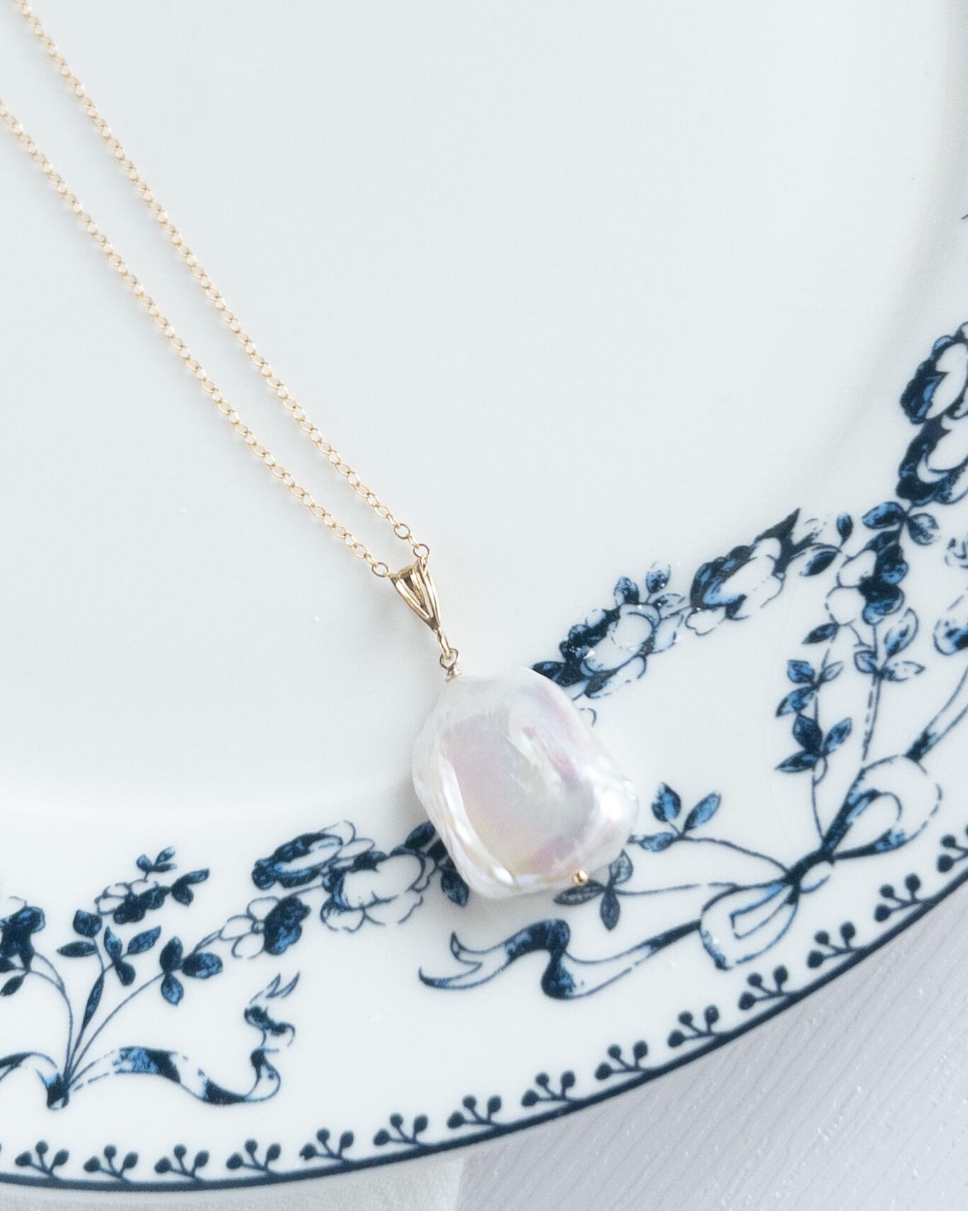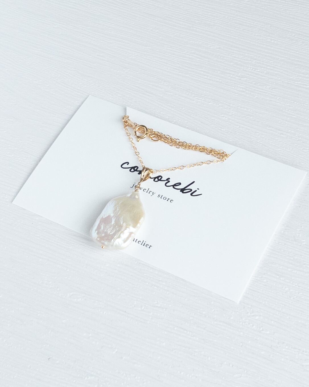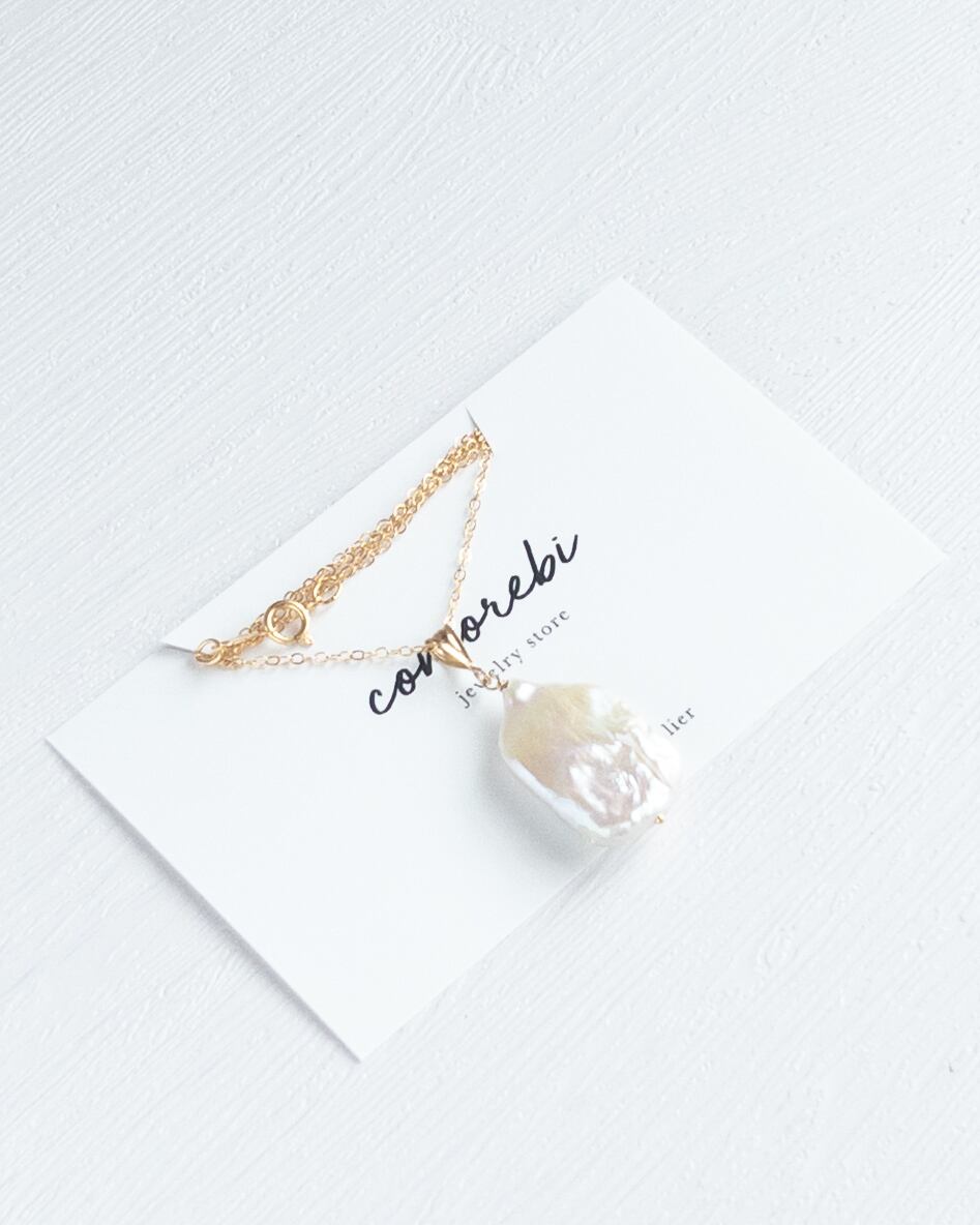 艶やかなホワイトの淡水パールを一粒、シンプルに仕立てた14kgfネックレス。