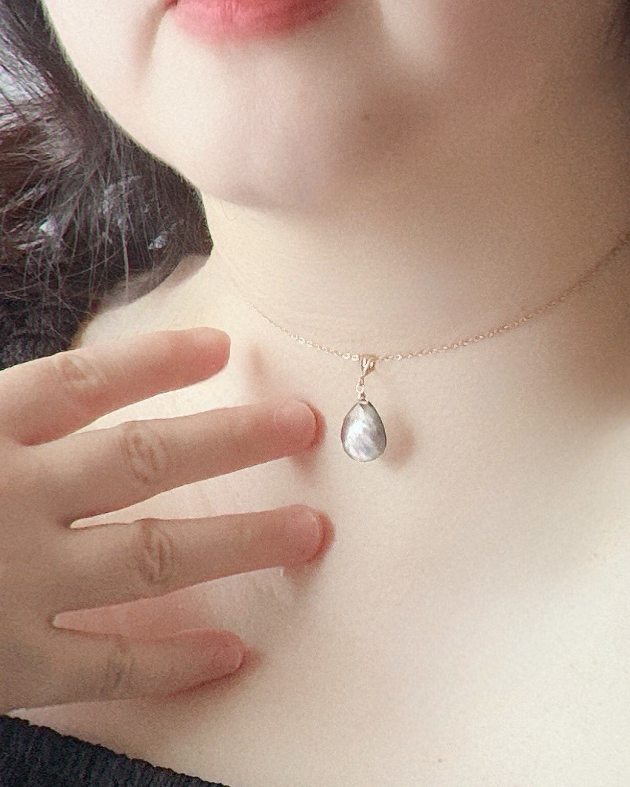 高品質シェル×14kgf ブラックシェル14kgfネックレス ブラックシェル シェルネックレス ナチュラル 大人っぽい