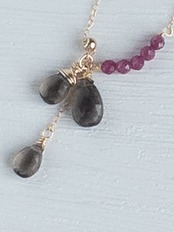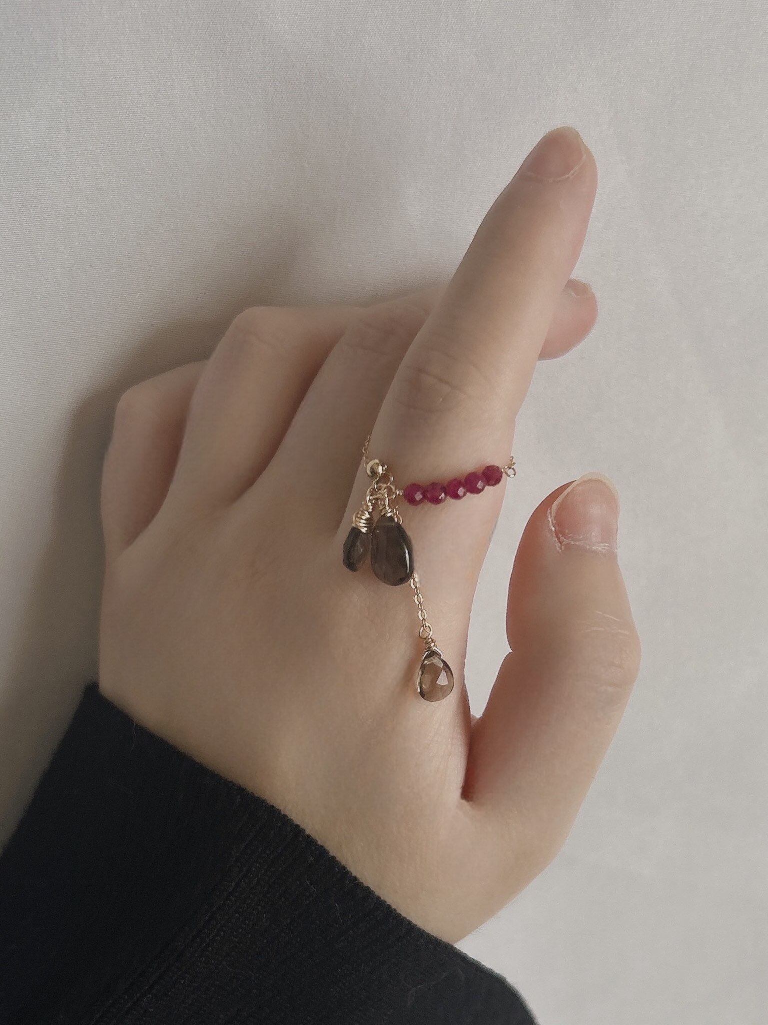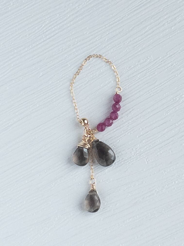 14kgf ファセット ペアシェイプ スモーキークォーツとルビーのスライドリング スライドリング 天然石リング スモーキークォーツリング 上品 秋 冬