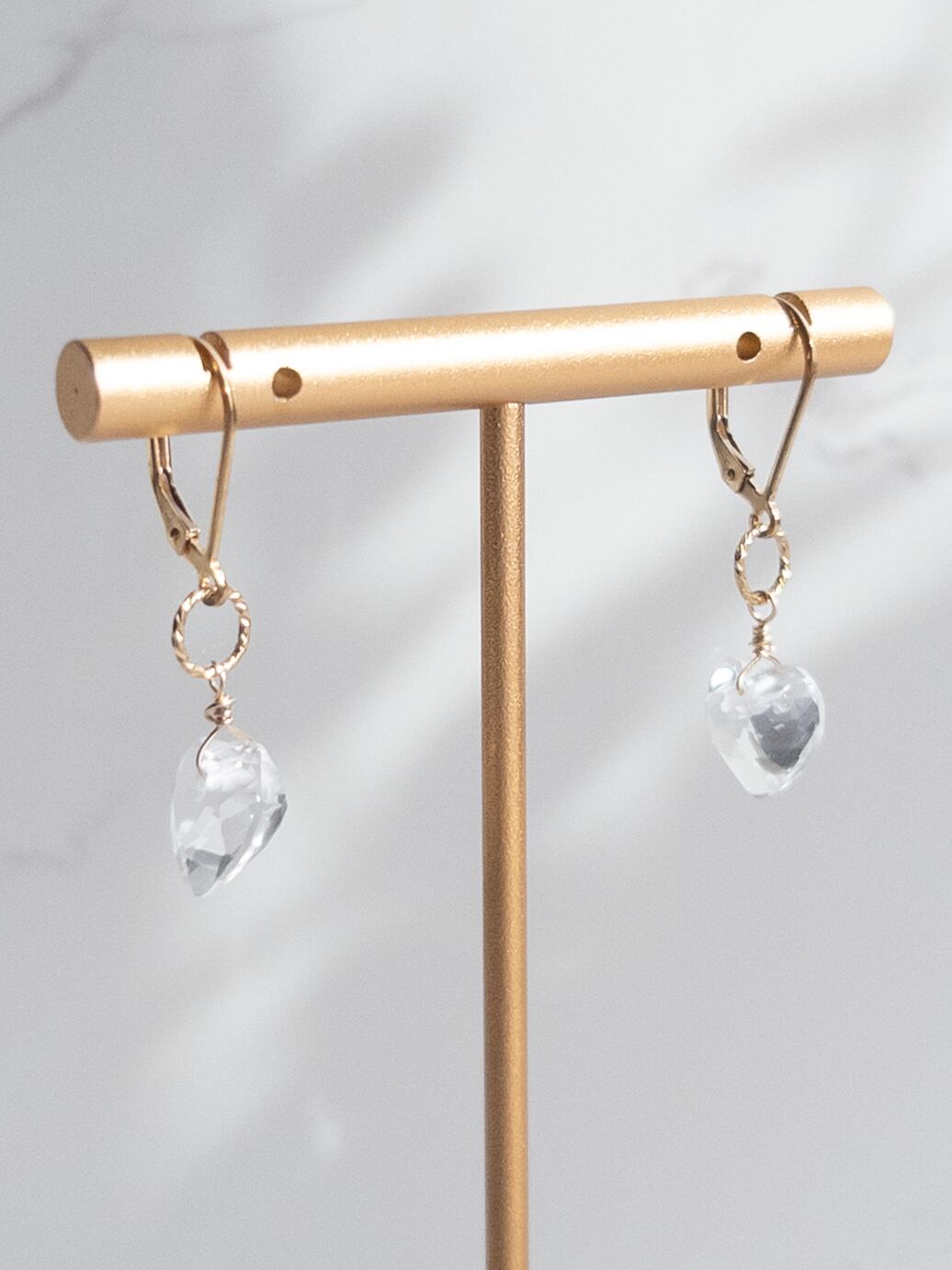 愛されるハートモチーフに、ブラジル産の透き通ったクリスタル天然石を使用した14kgfピアスです。