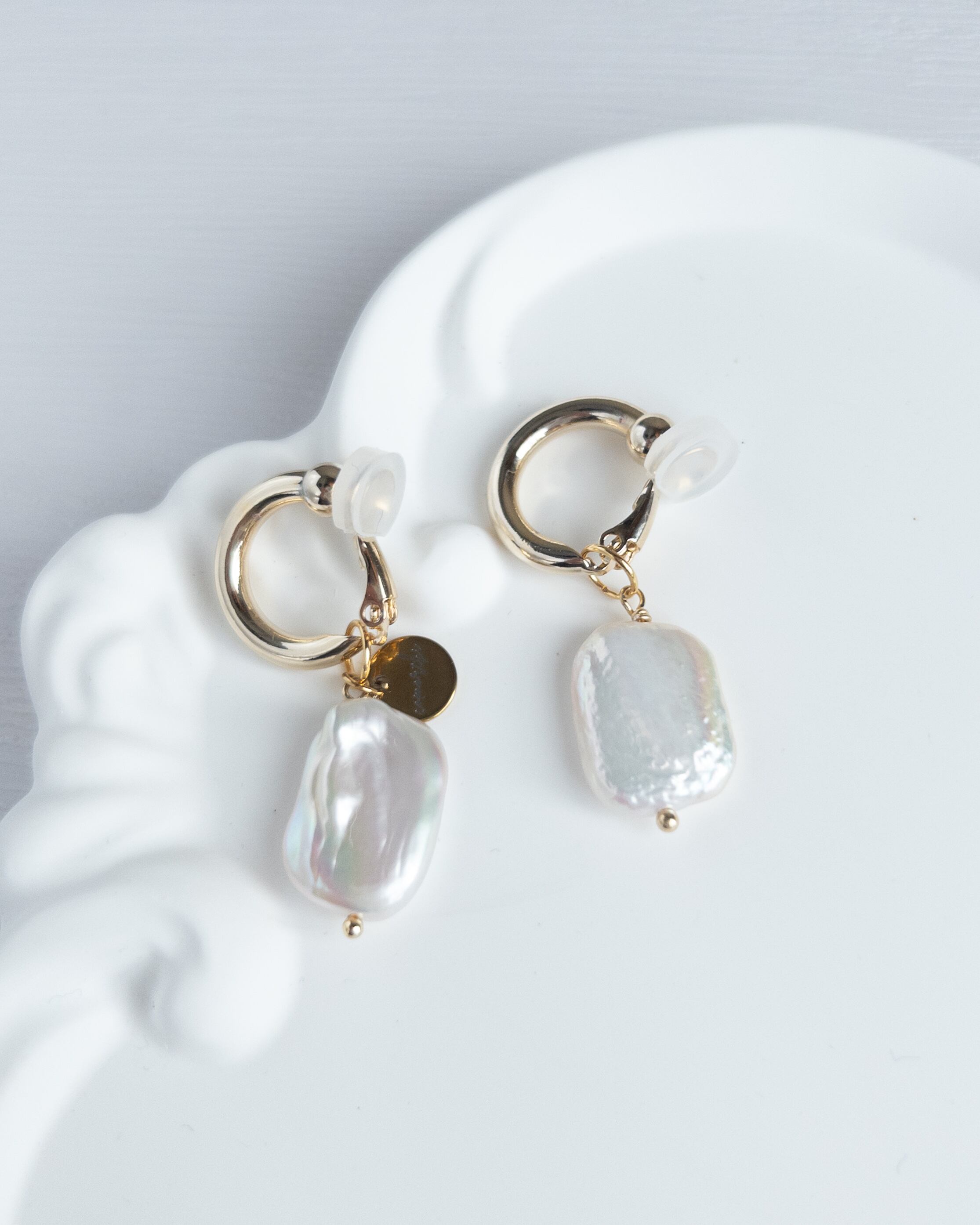 都会のエレガンス スクエアバロックパールフープイヤリング バロックパールイヤリング フープイヤリング フォーマル お出かけ