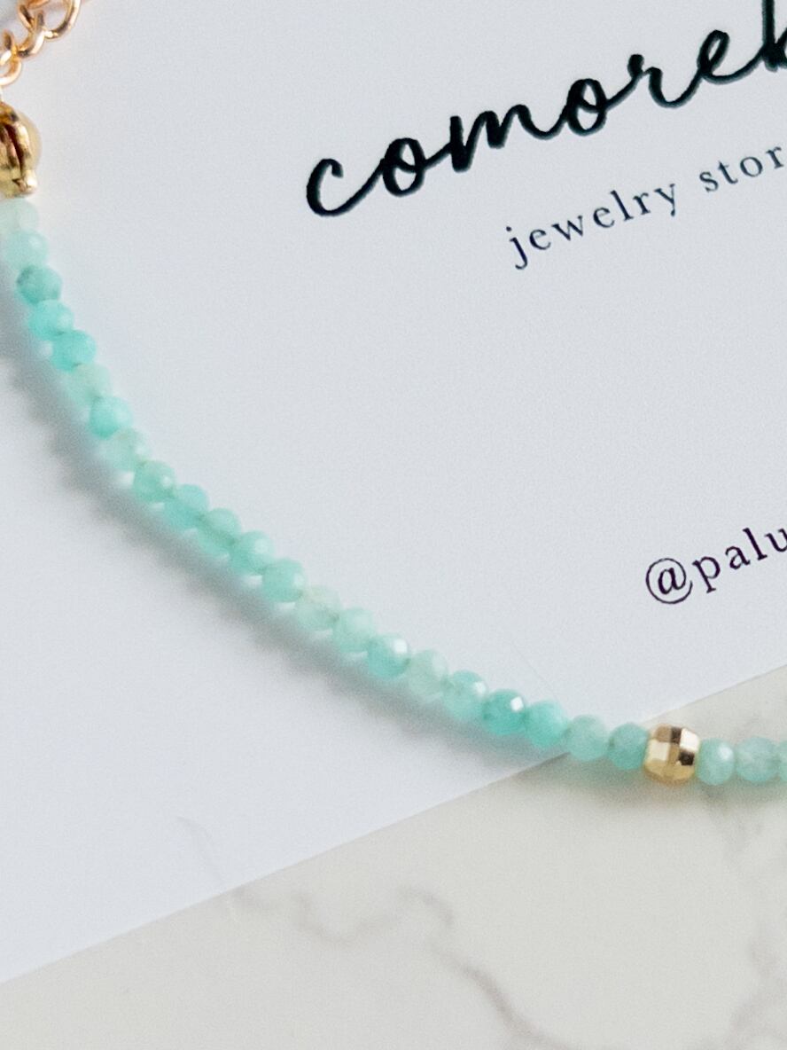 Eternal Shine - シンプル天然石ブレスレット アマゾナイト ステンレス ニッケルフリー サイズ調整可 錆びにくい 日常 お出かけ