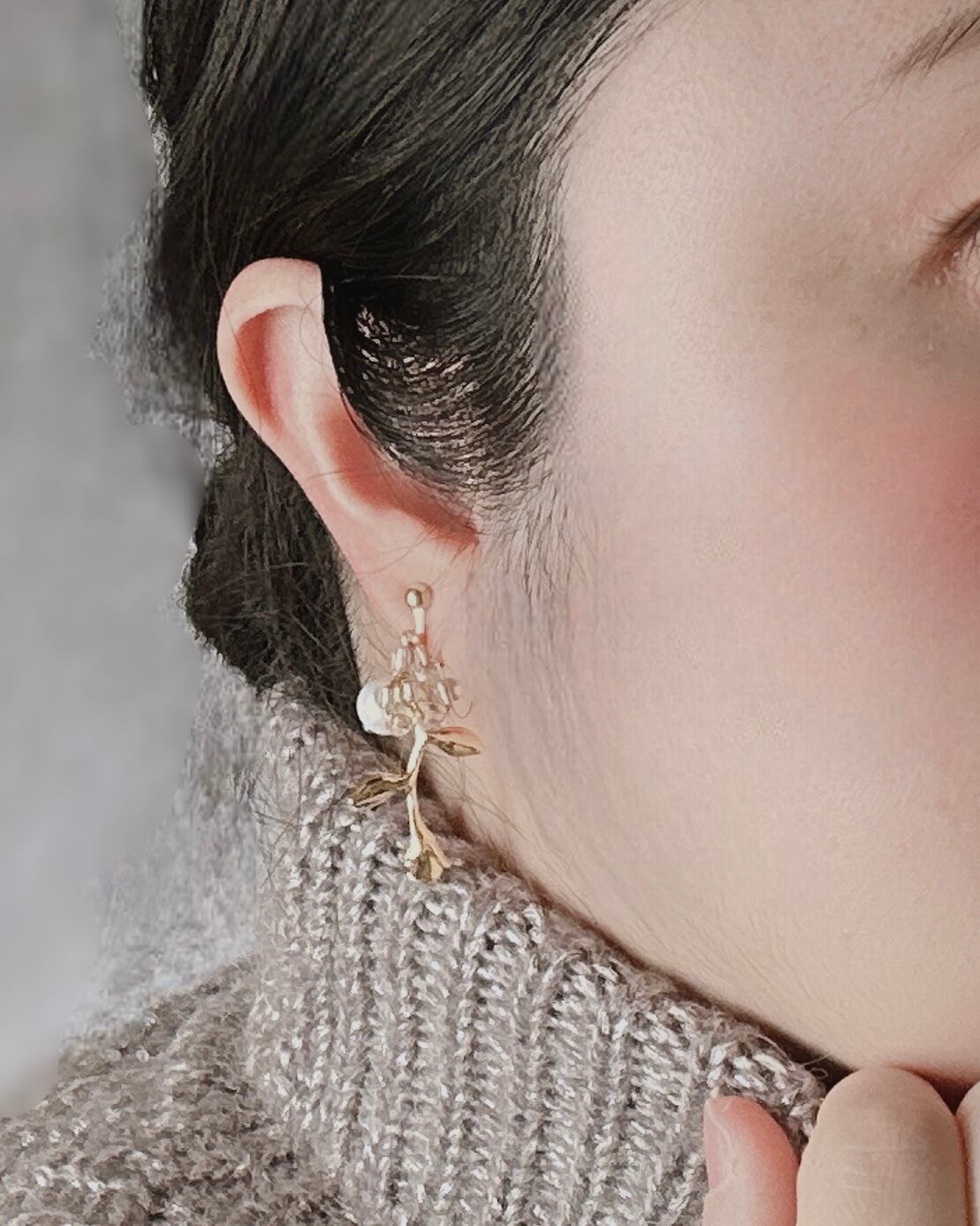 ゴールドのイヤリング金具はニッケルフリーで、アレルギーが気になる方にも安心してお使いいただける仕様になっています。