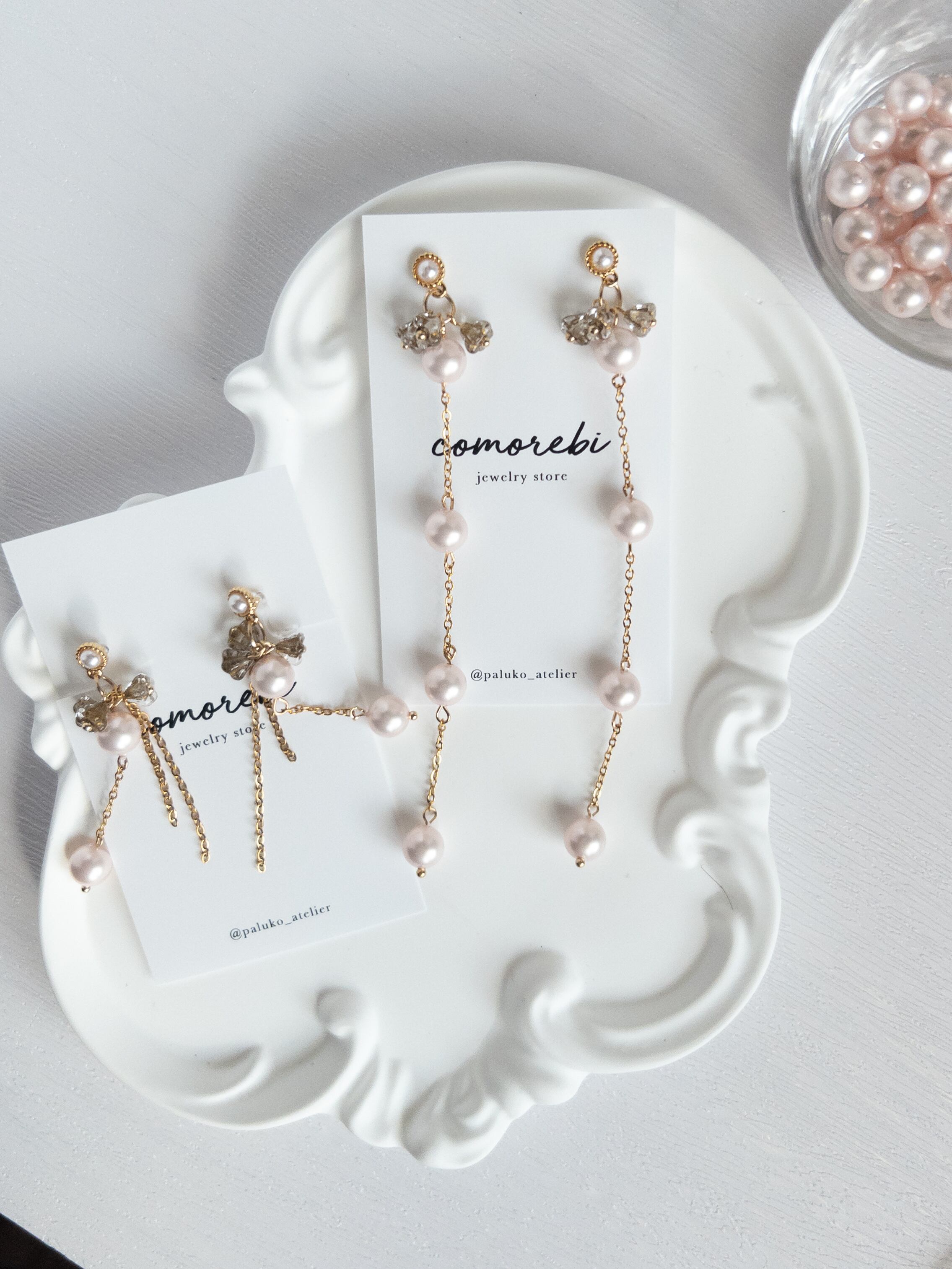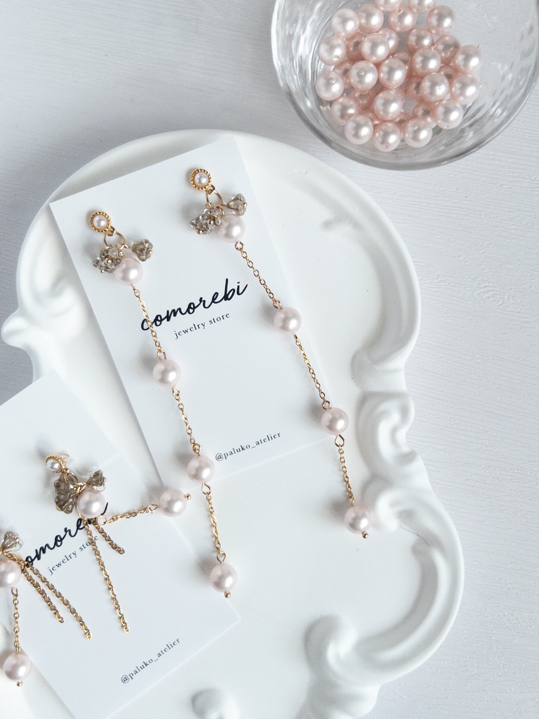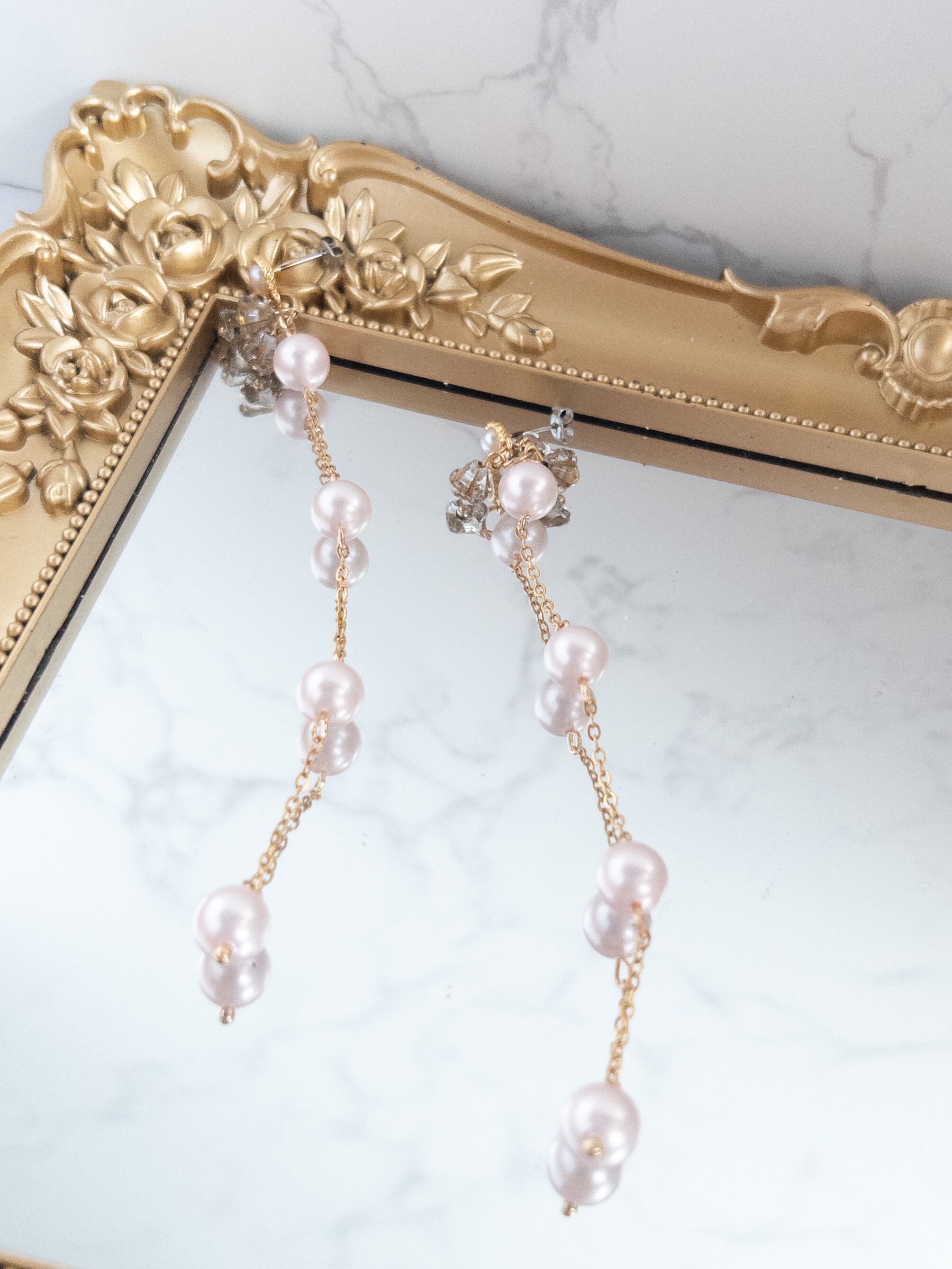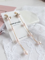 この『ピンクシルキーパールロングピアス』は、まるで春の花が咲き誇るような美しさを耳元に届けます。