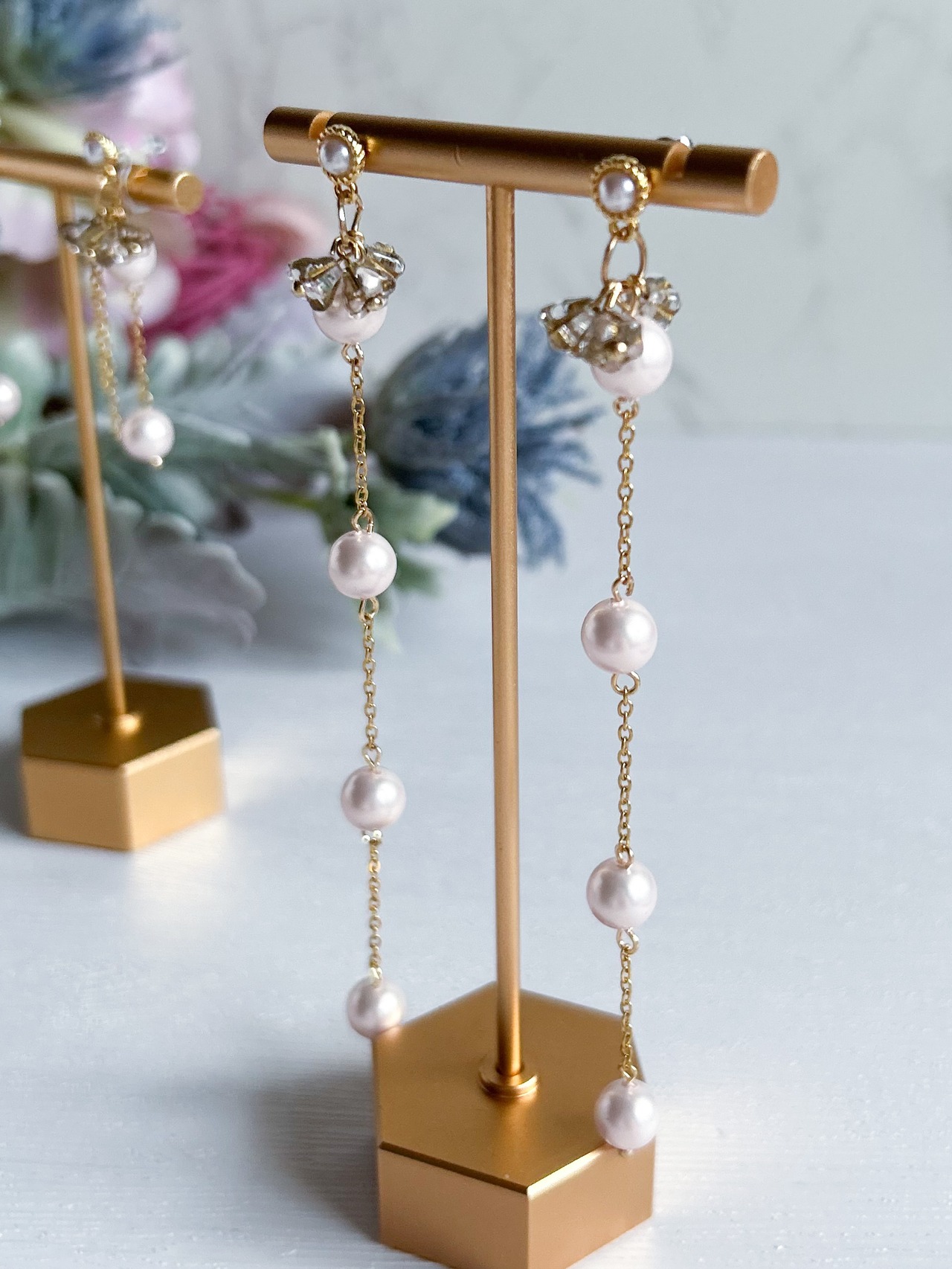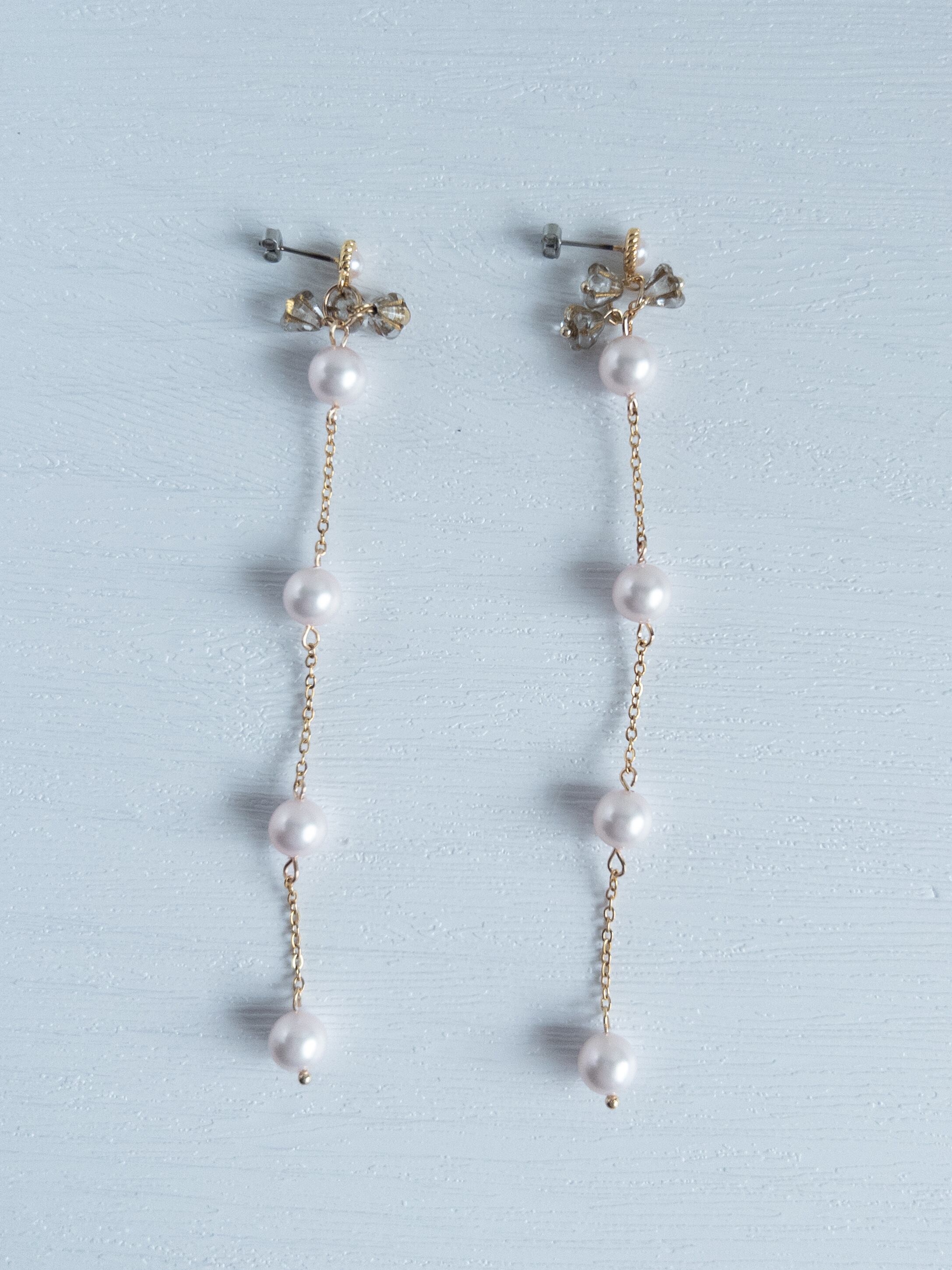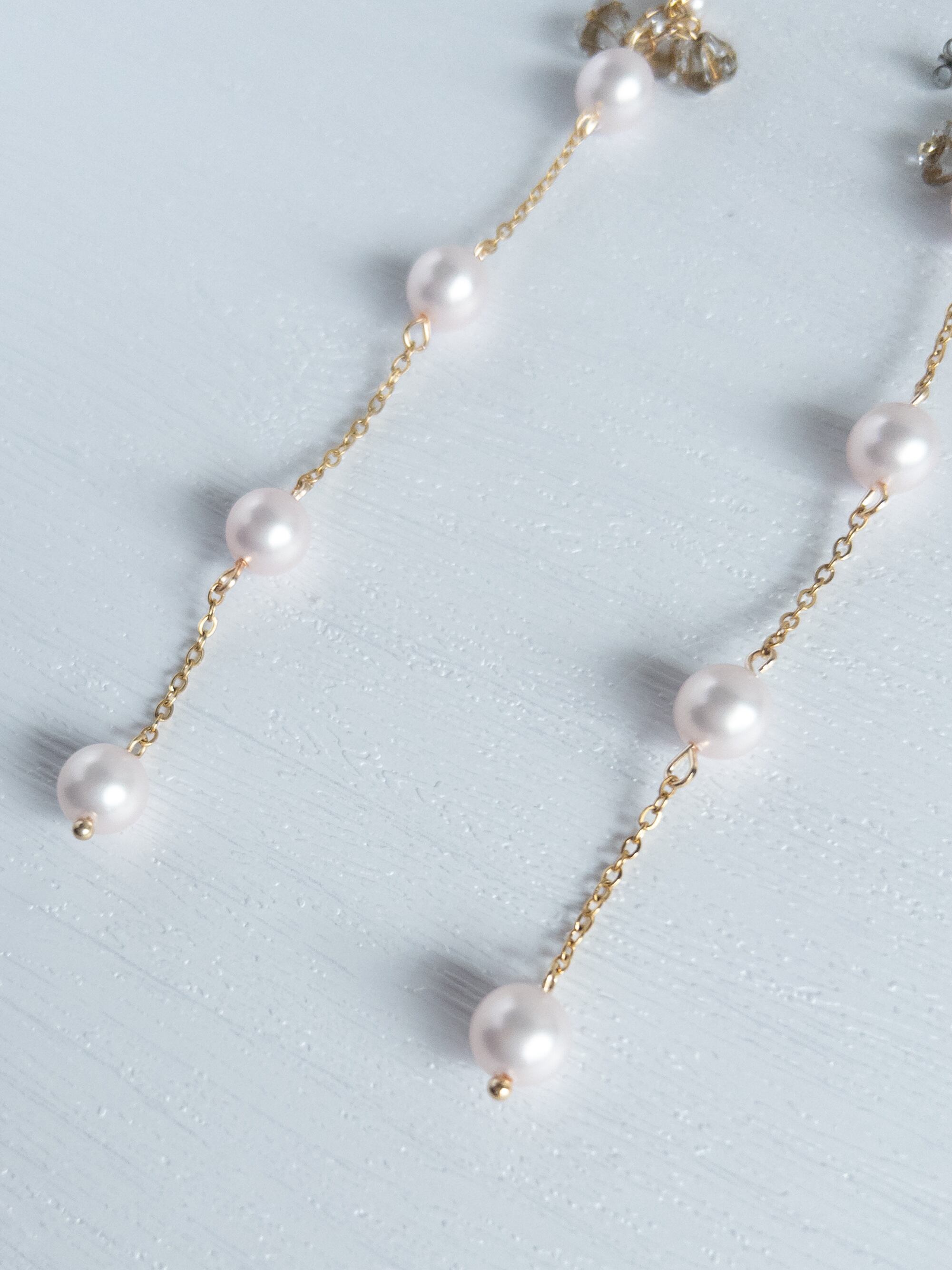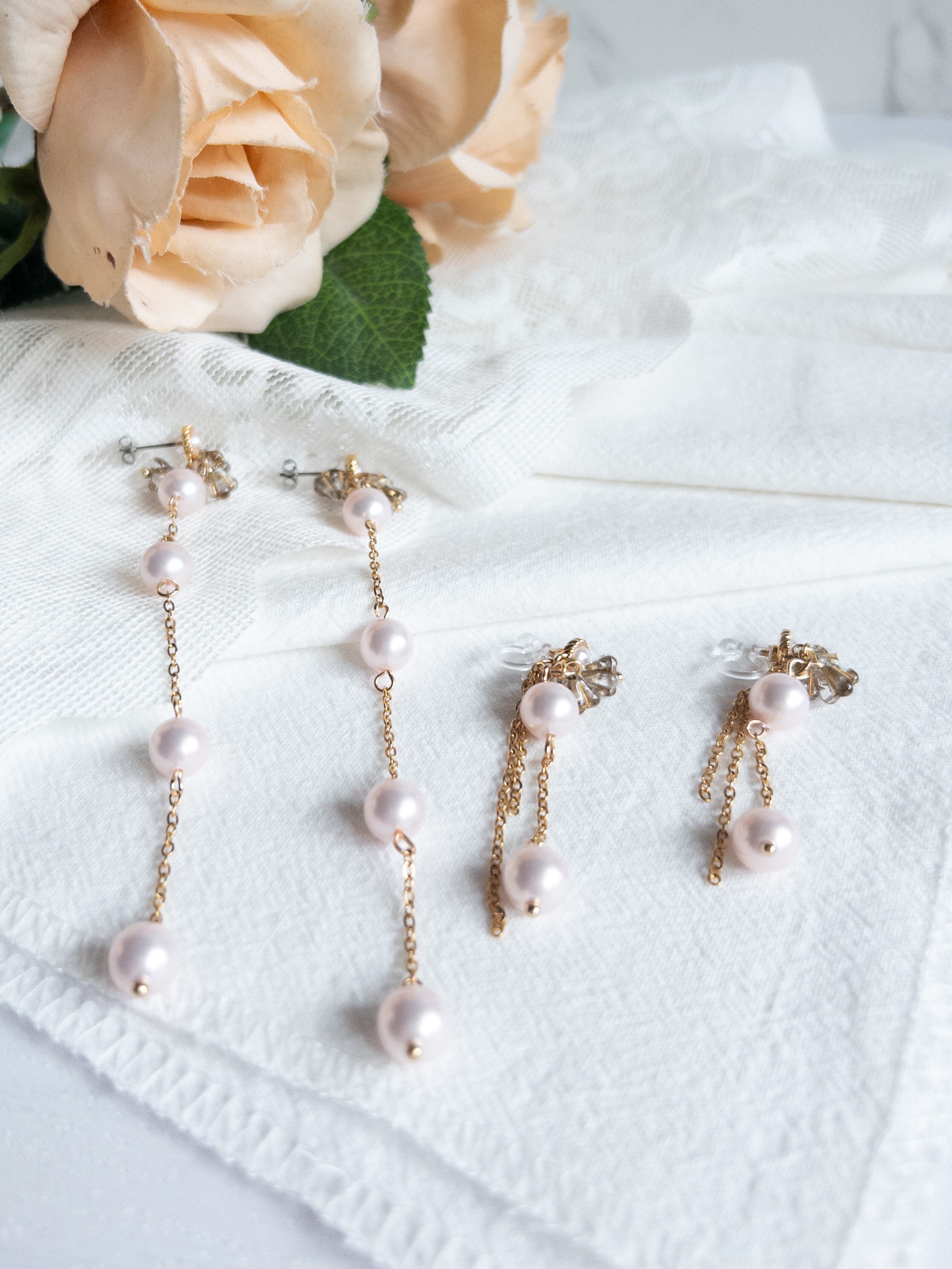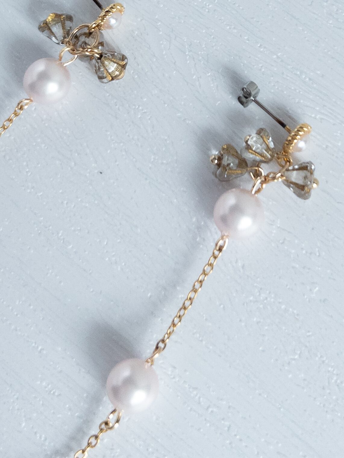 素 材|シルキーパール:樹脂、ピアス金具、チェーン:ステンレス、フラワービーズ