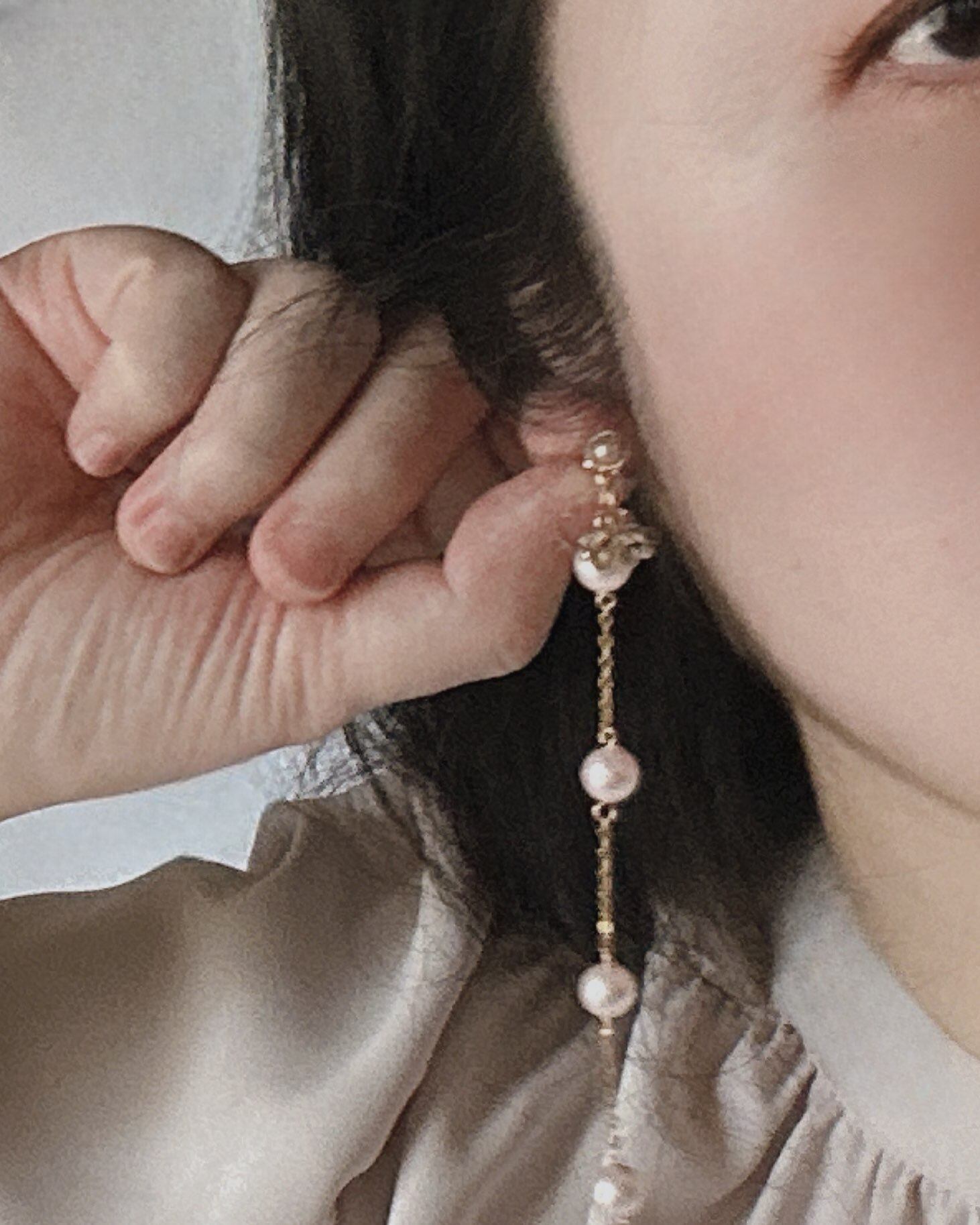 長さ12㎝のピアスは、流れるようなチェーンとトップにあしらわれた