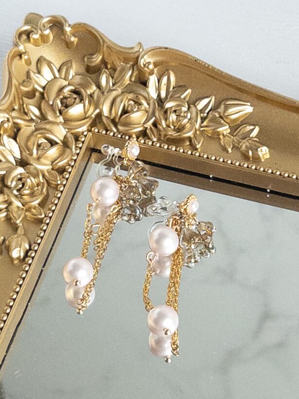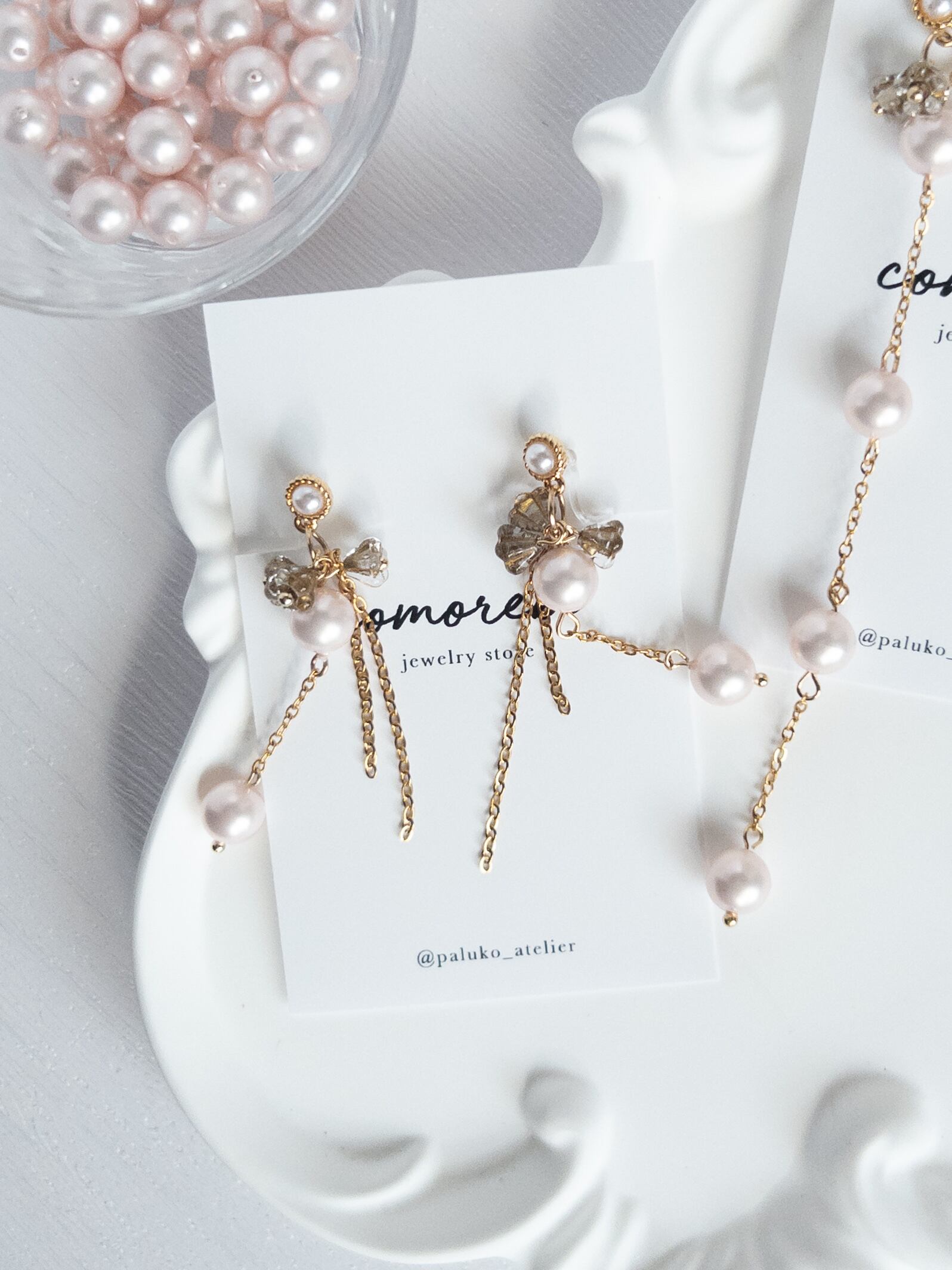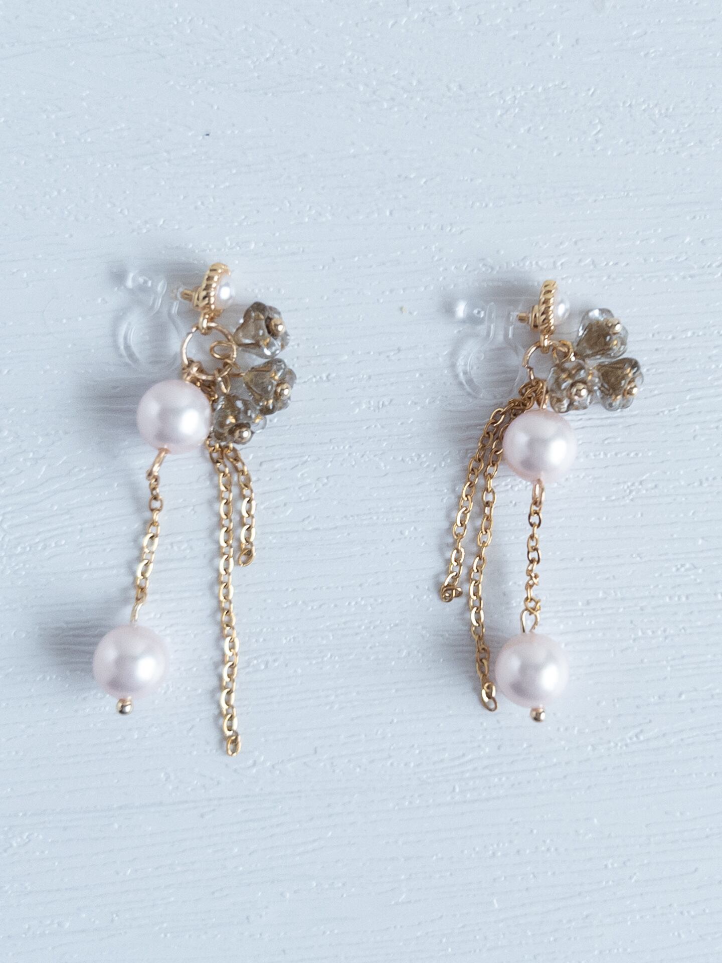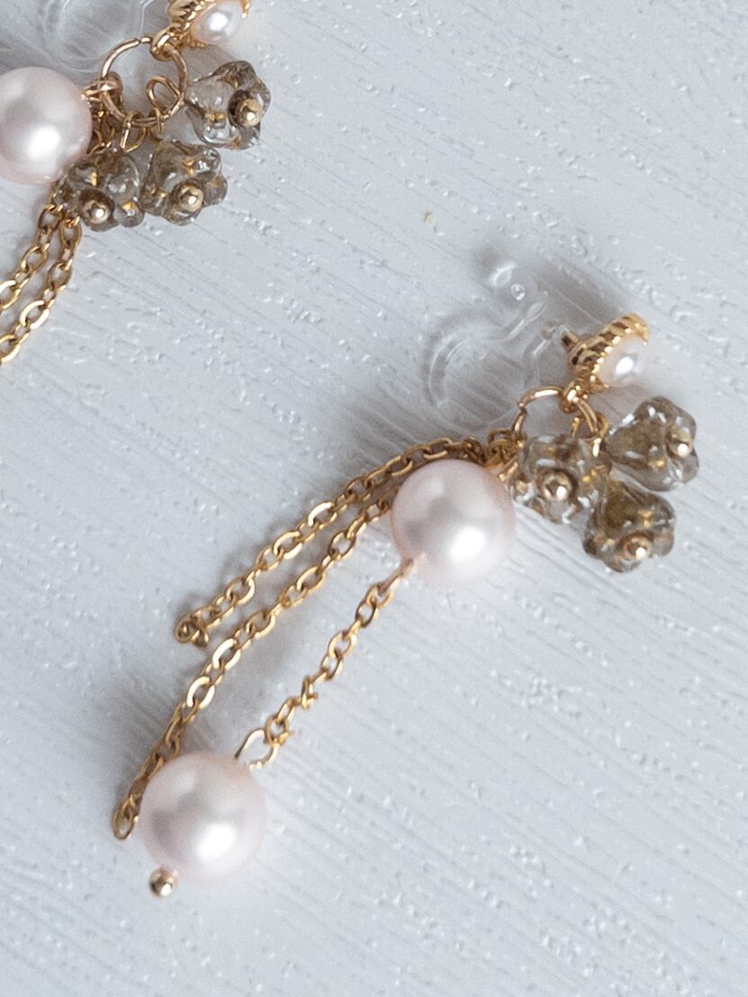 素 材|パール、イヤリング:樹脂、フラワービーズ、チェーン:ステンレス