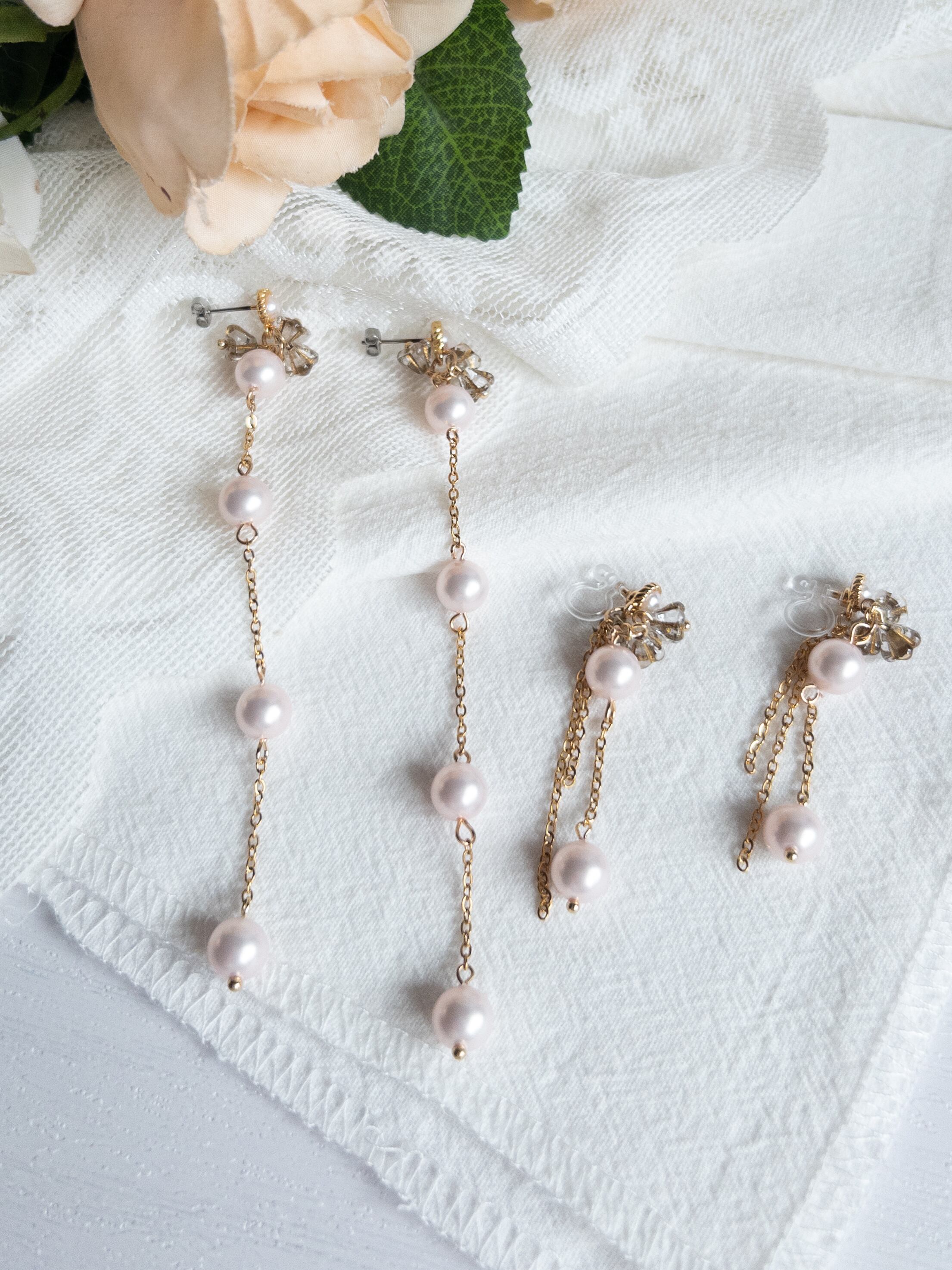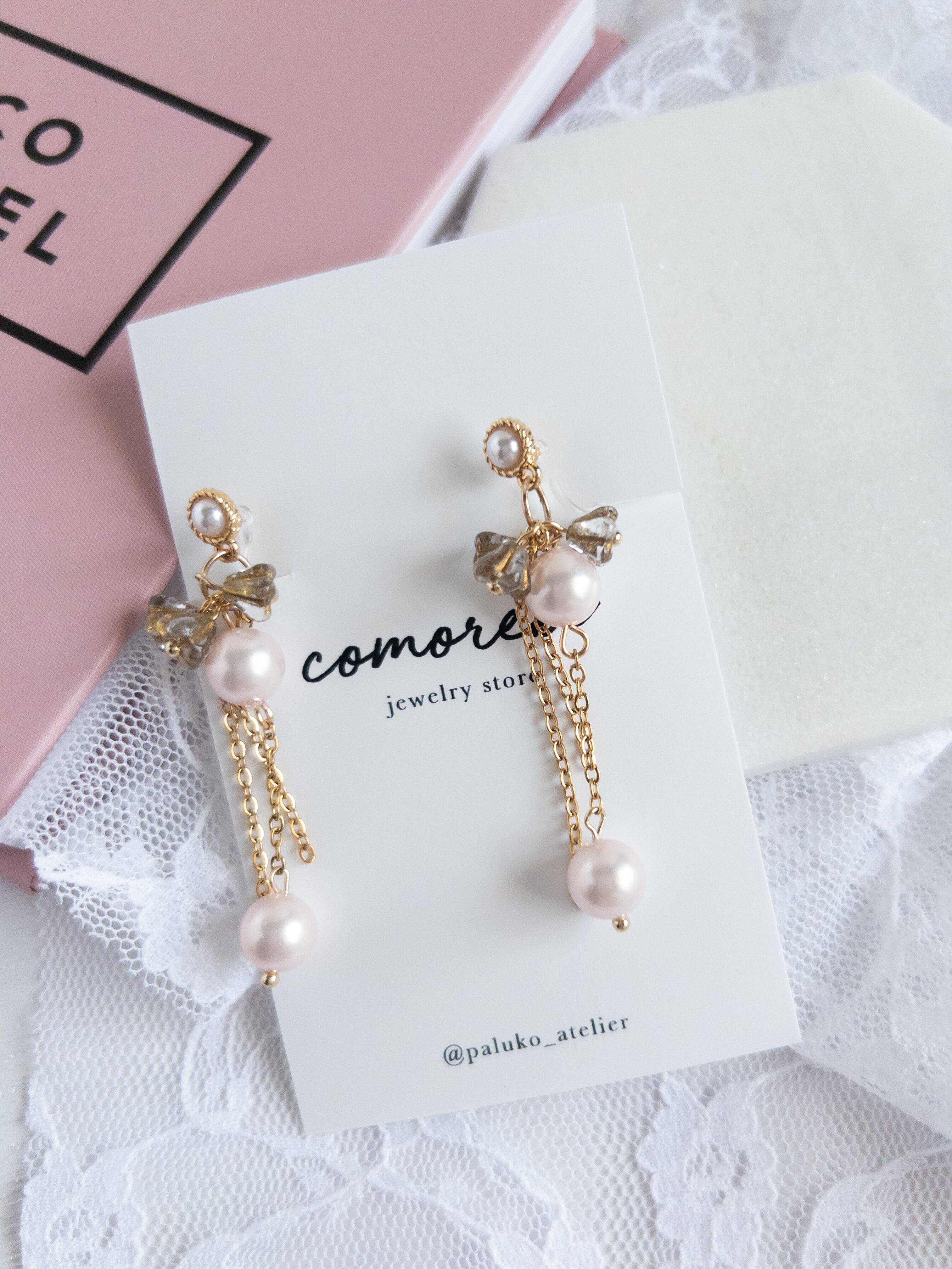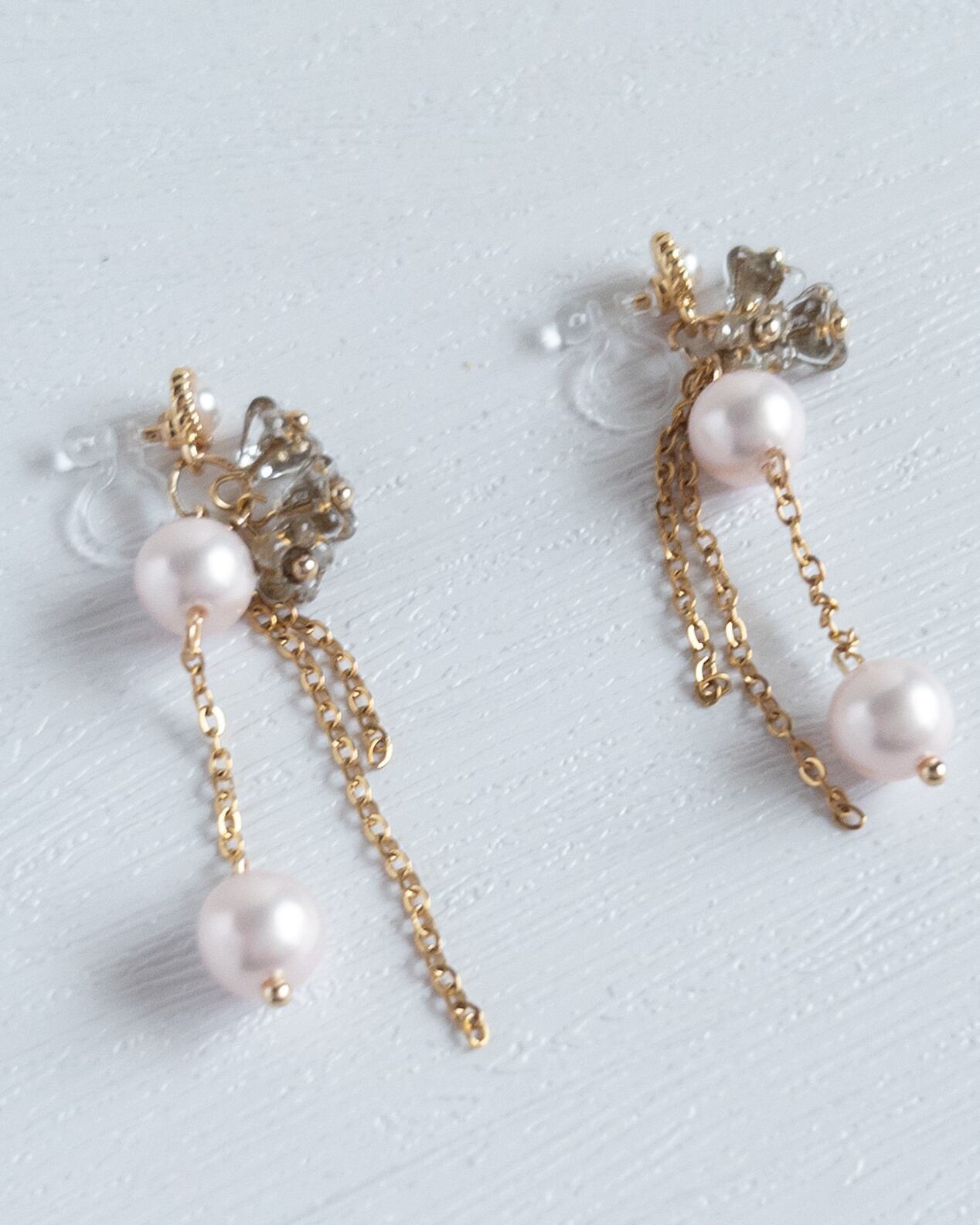 素 材|パール、イヤリング:樹脂、フラワービーズ、チェーン:ステンレス