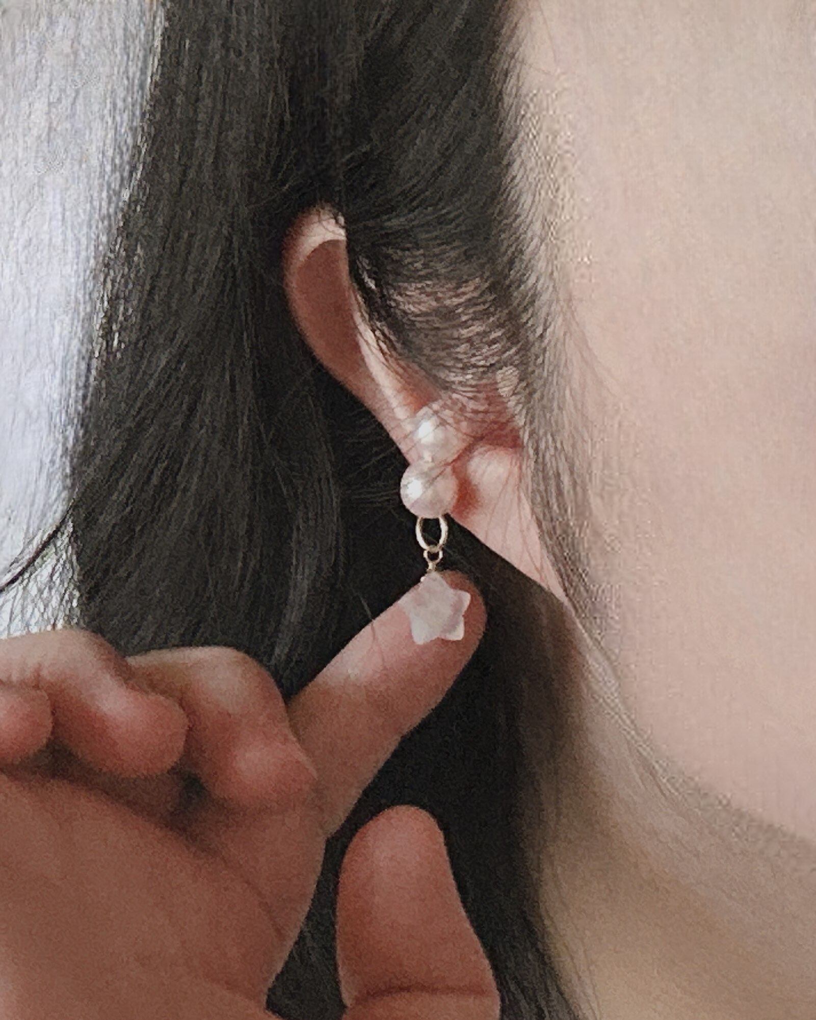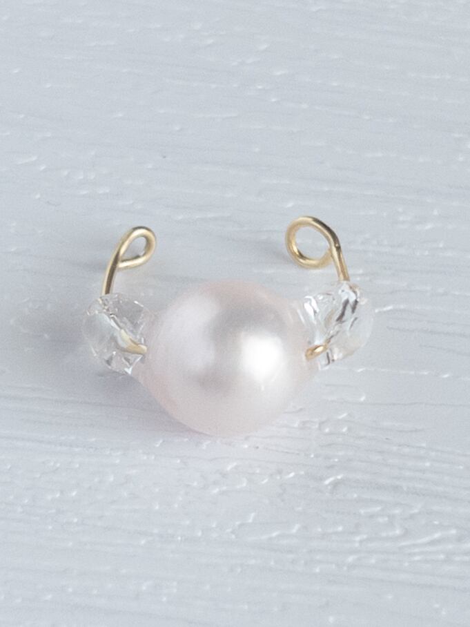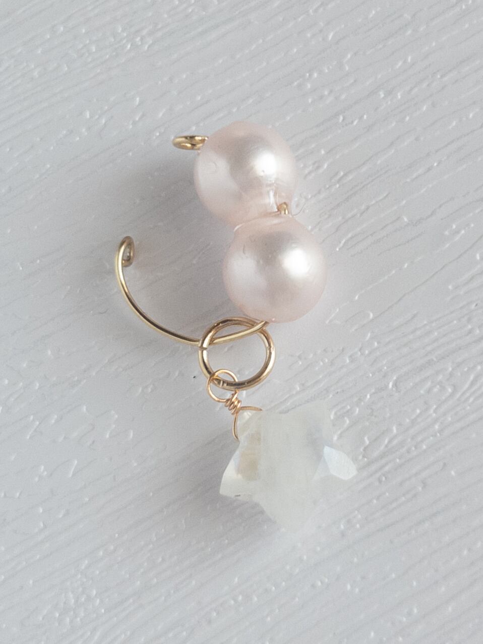 ピンクロマンチックパールイヤーカフ レインボームーンストーン イヤーカフ パールイヤーカフ 取り外し可 ピンクパール シルキーパール 女子力 可愛い