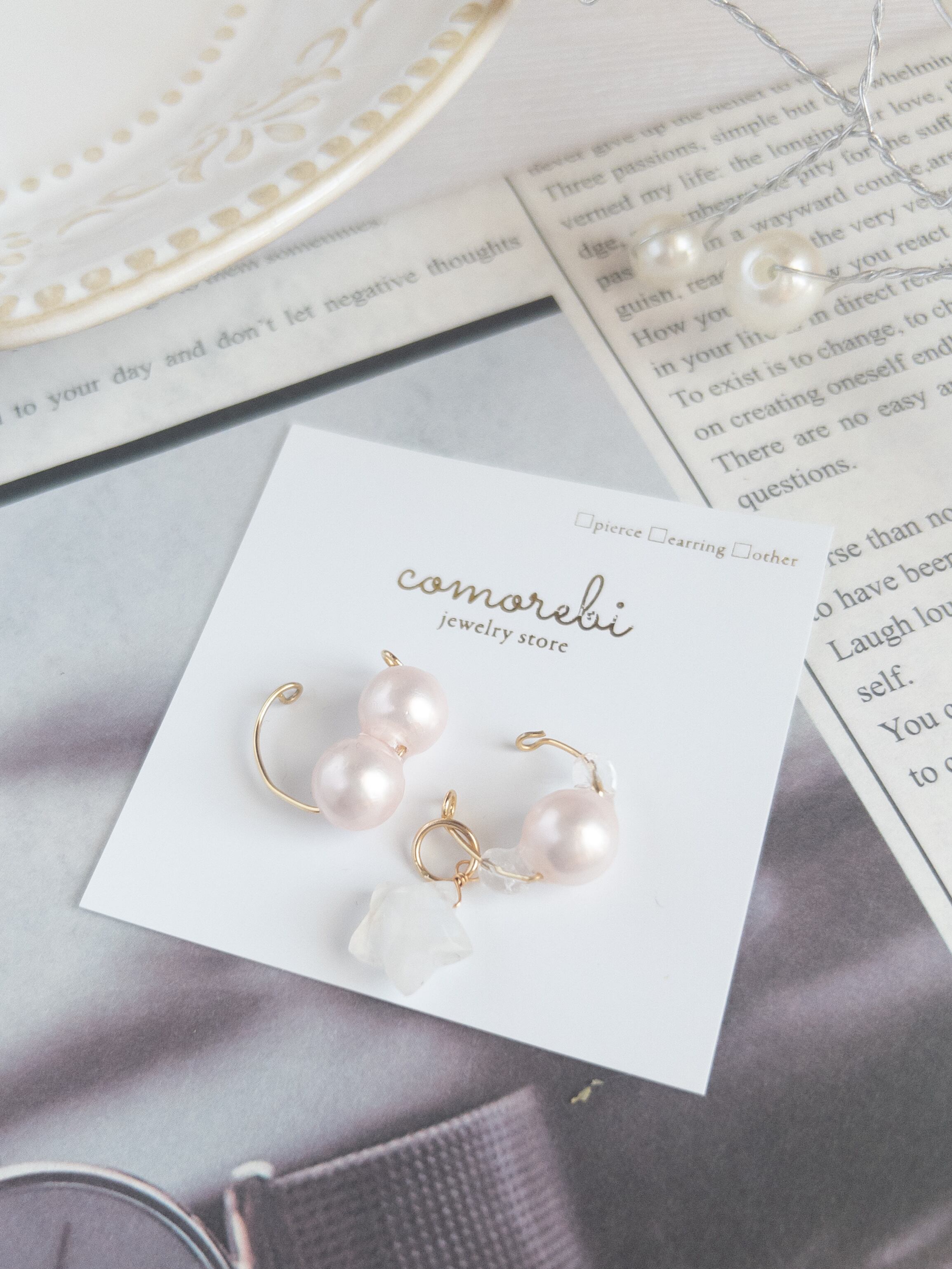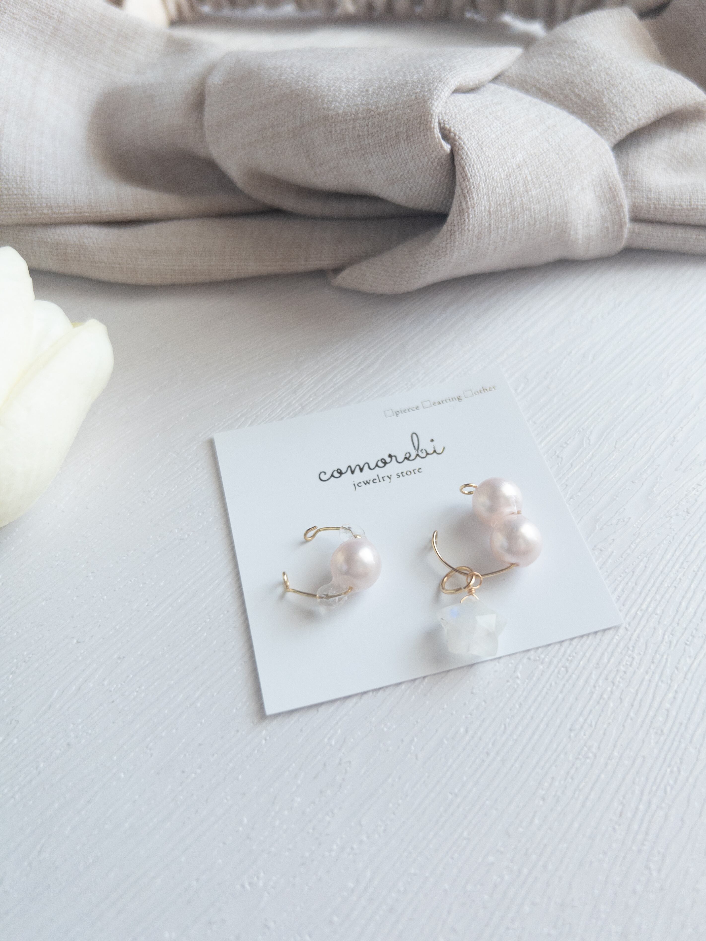 ピンクパールとレインボームーンストーンの組み合わせは、どんなお出かけにも華やかさをプラスし、
