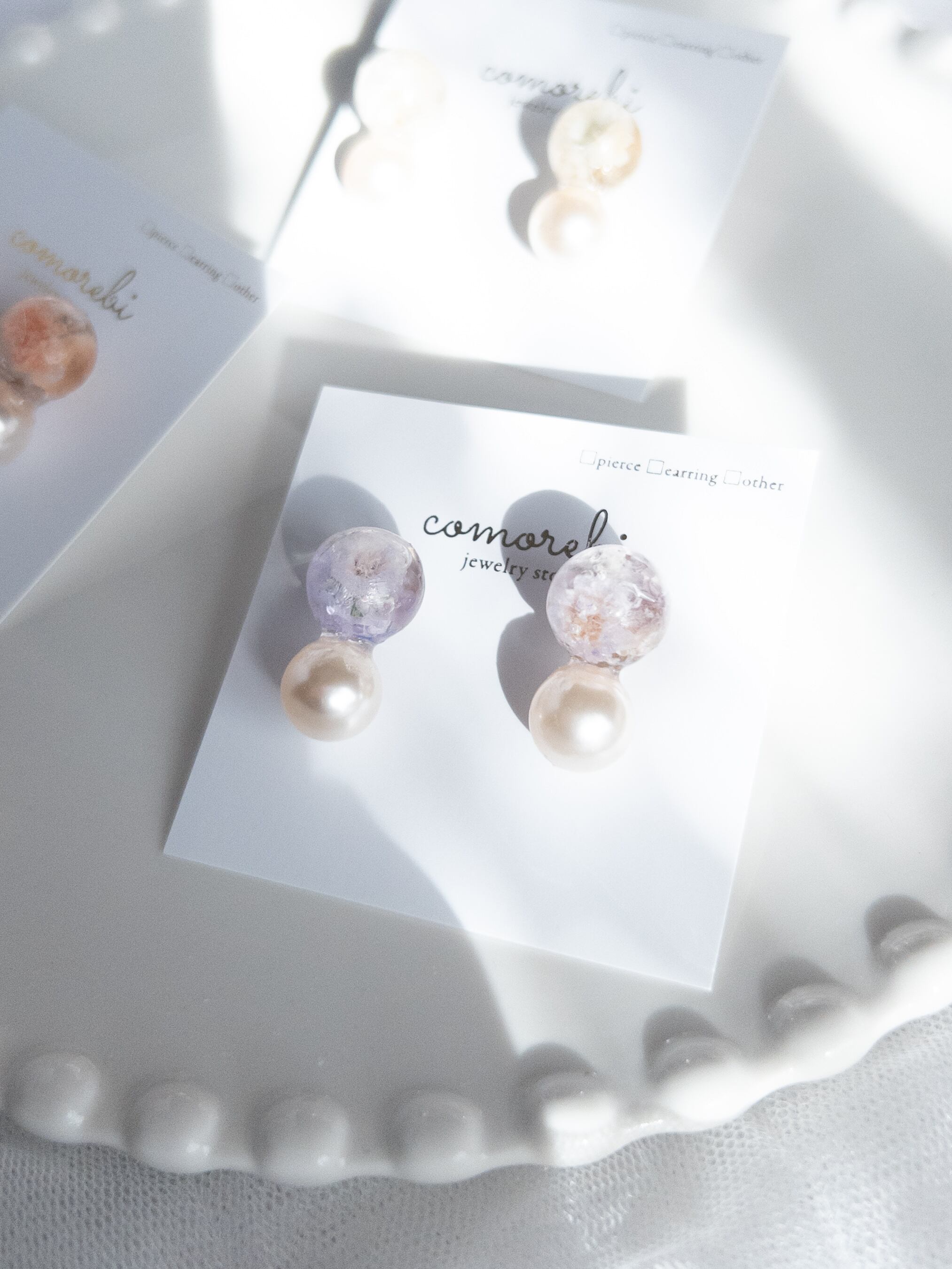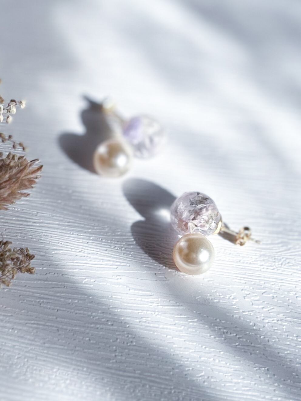 素 材|レジン、かすみ草、クルスタルパール、ステンレスピアス