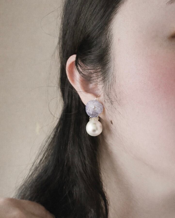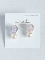 かすみ草クリスタルパールパール ラベンダー 丸レジン かすみ草 パール ステンレスピアス 艶ピアス 参観日 商談 春