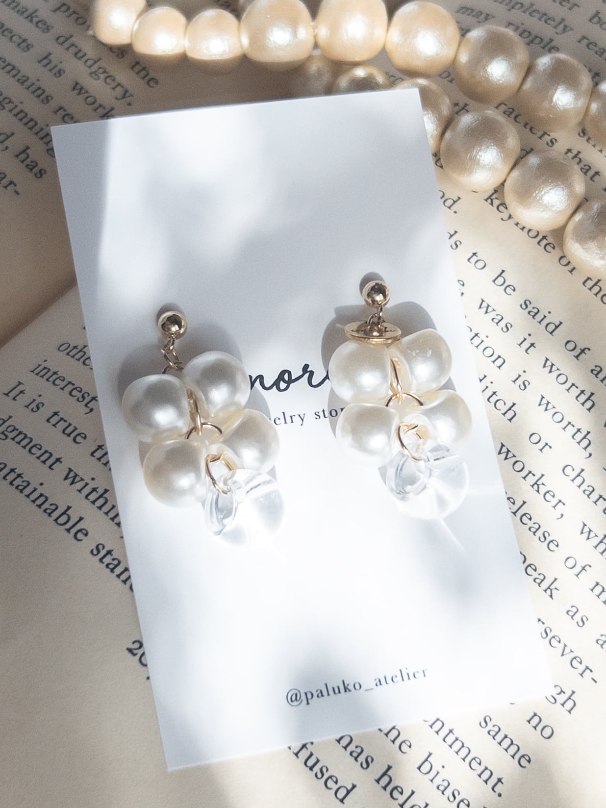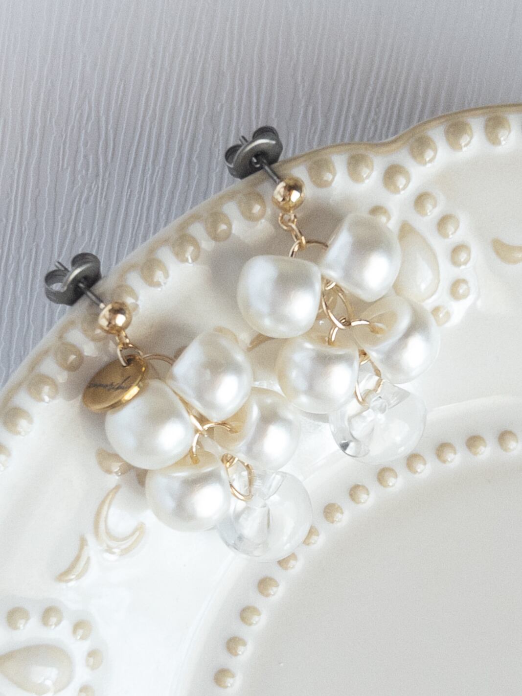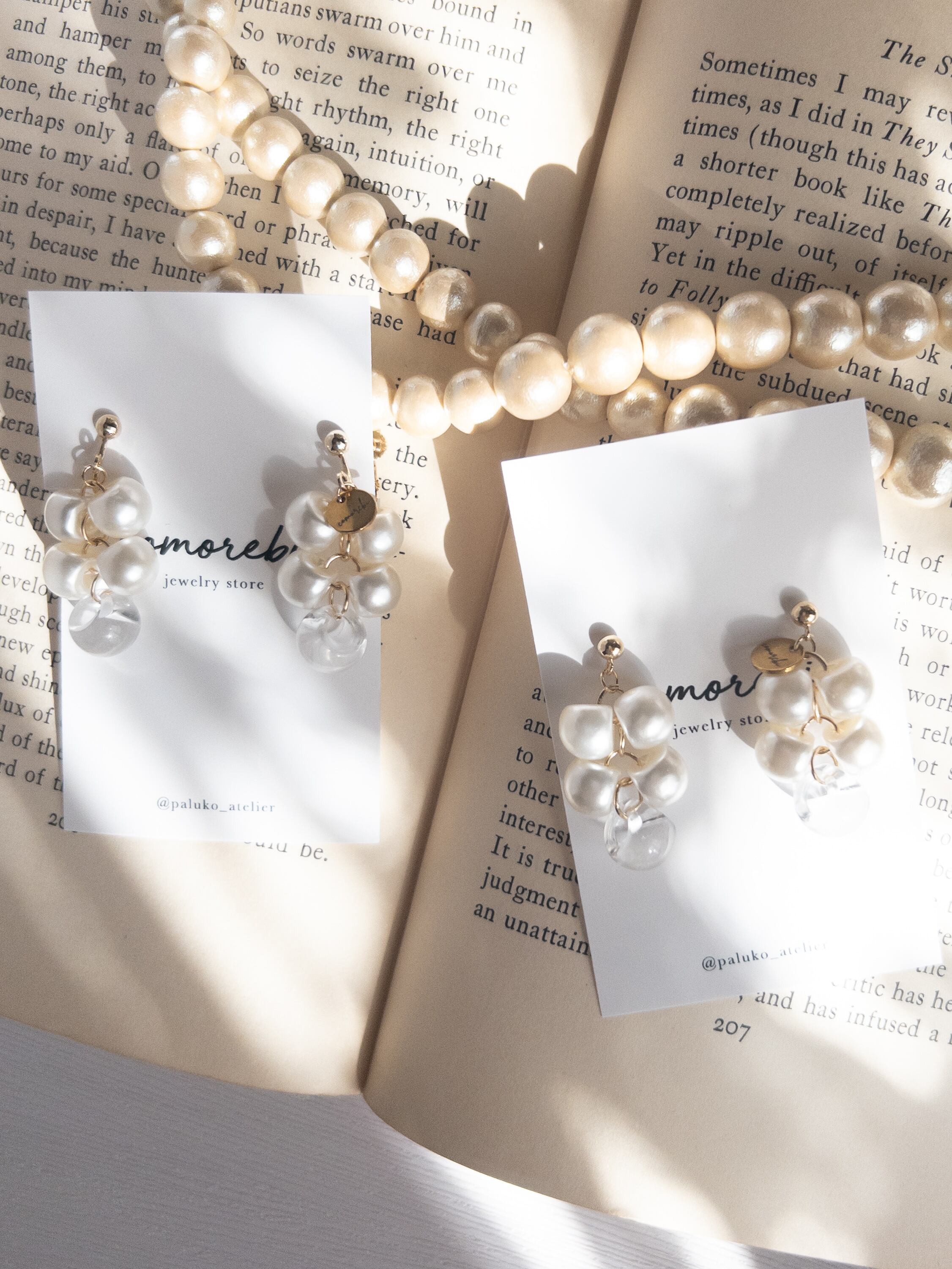 素 材|スズマルパールビーズ、スズマルクリアビーズ:アクリル、ピアス金具:チタン、丸カン:真鍮