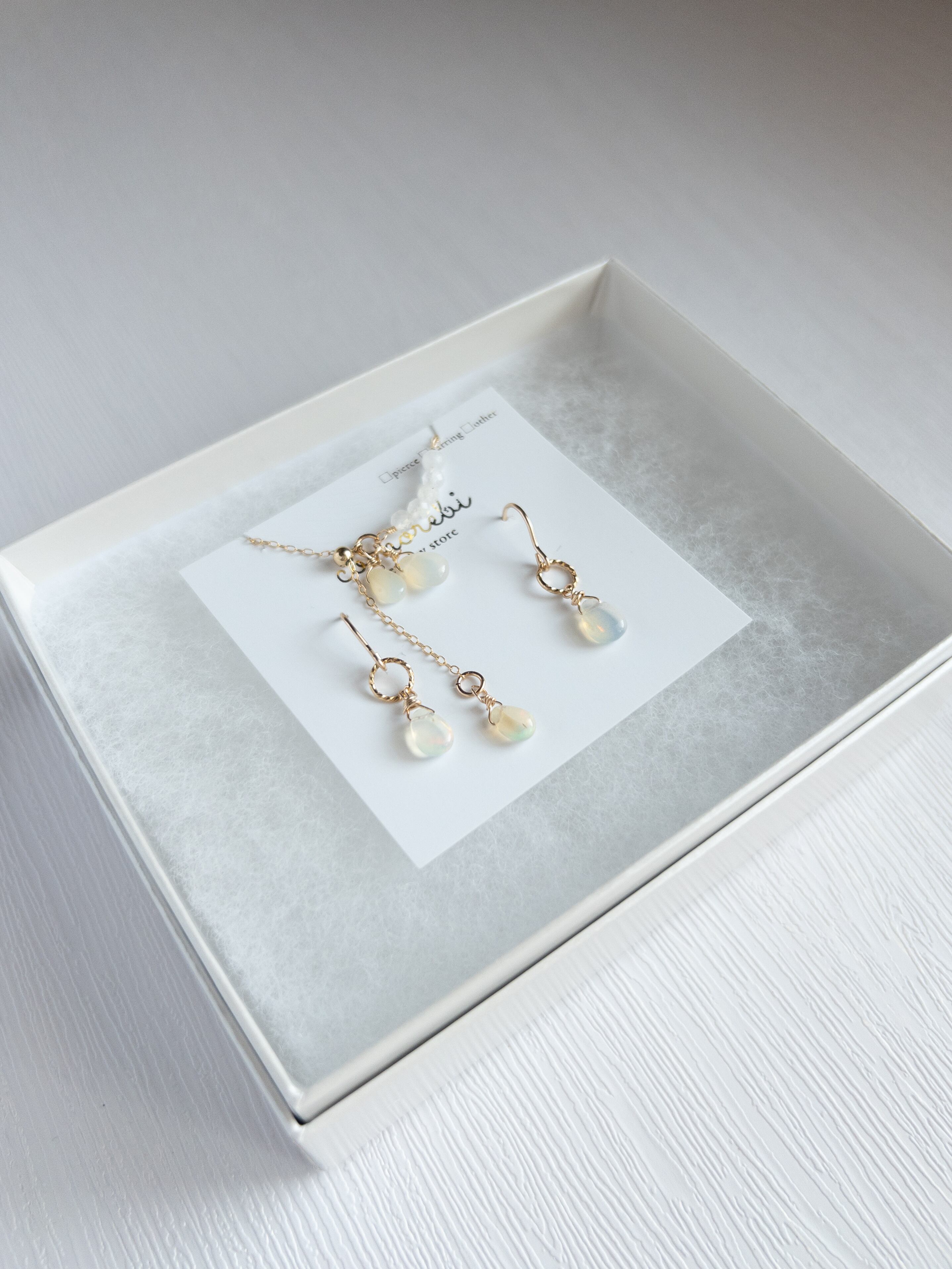 同じオパールのピアスとイヤリングもご用意してますので、ぜひお得にセットでお買い求め頂けます