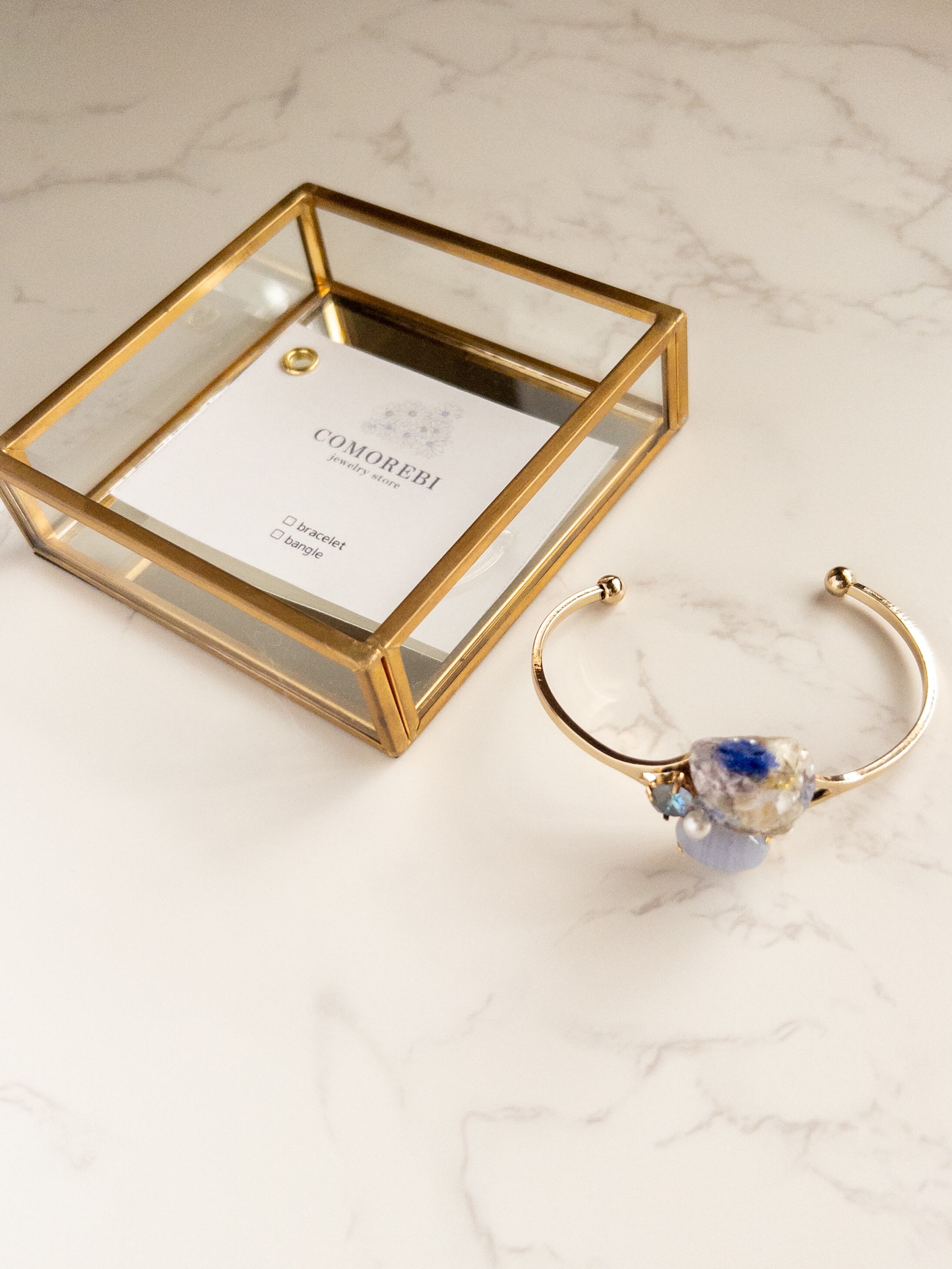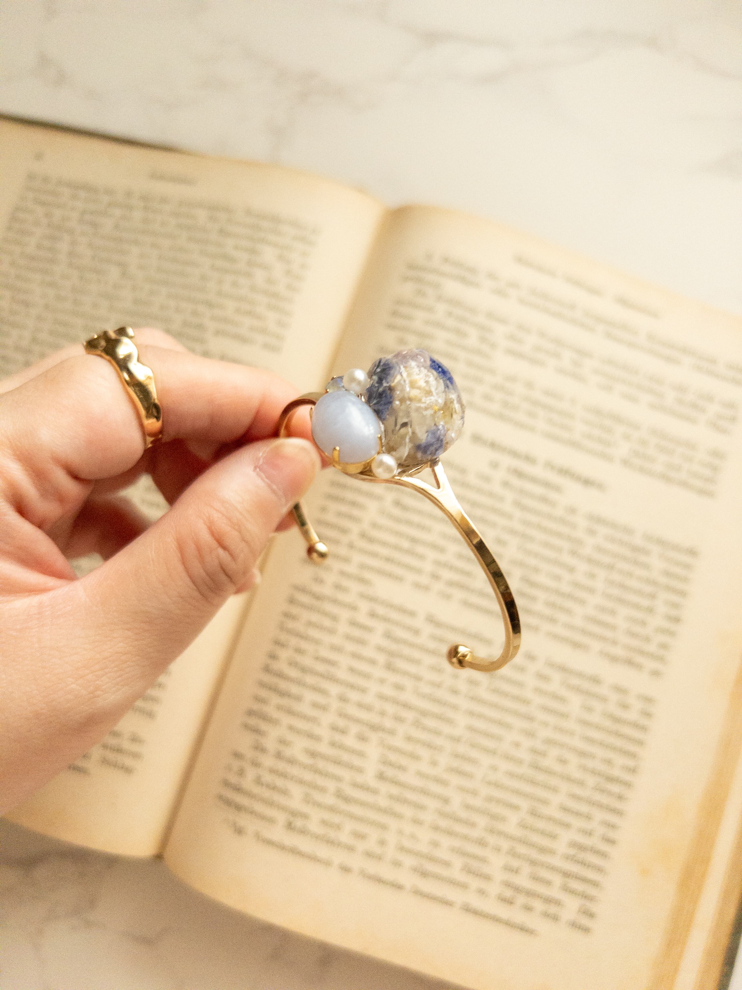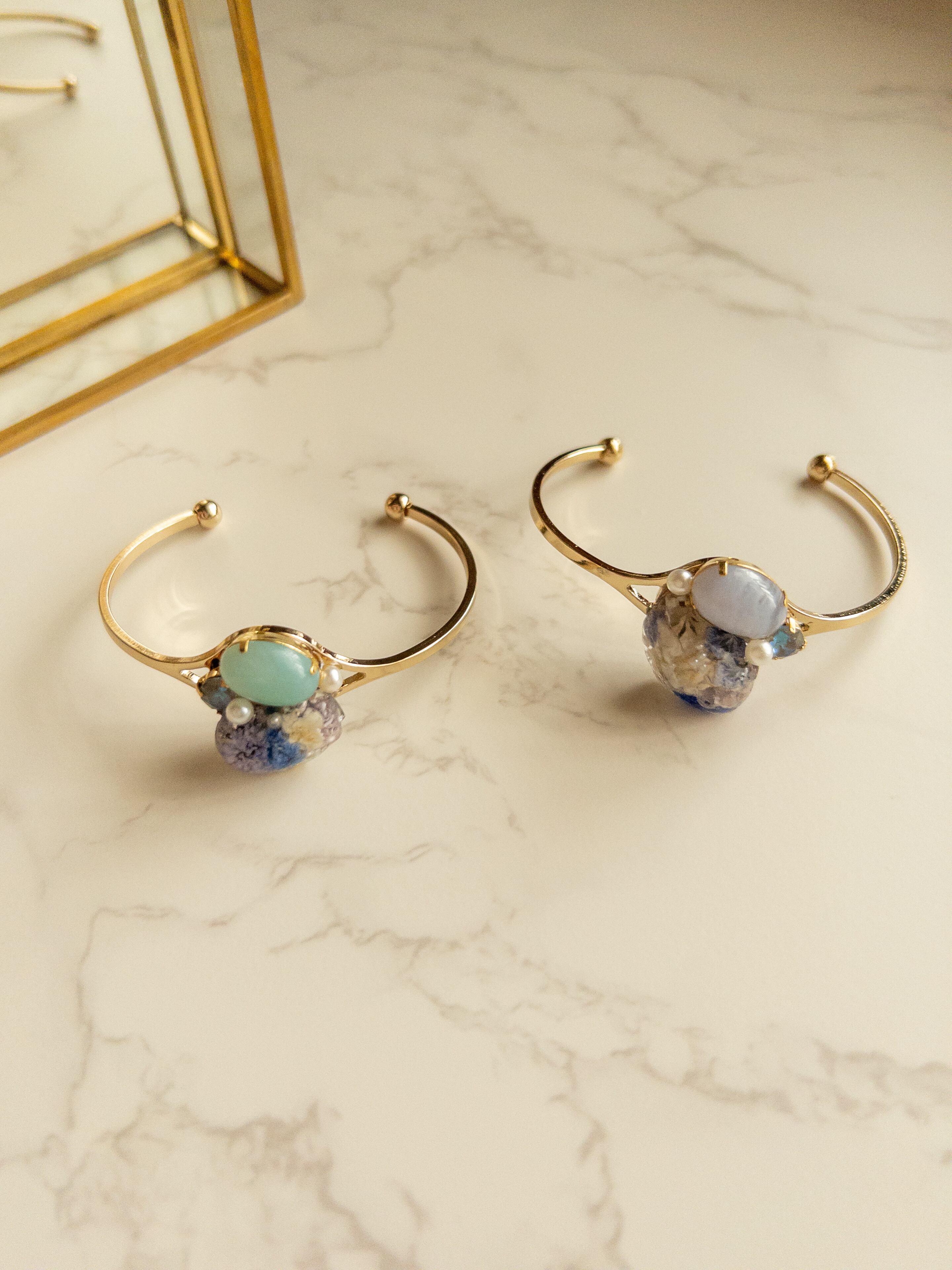 天然石のバングル クリスタル ブルーレース ブレスレット 天然石 レジン ドライフラワー ビジュー バングル 上品 お出かけ